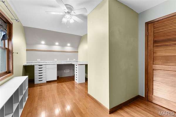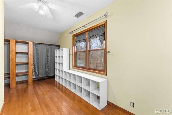 The main level offers one bedroom and a full bath, while upstairs you’ll find two additional bedrooms and another full bath. One upper bedroom features private access to a balcony overlooking the property, and the third, currently used as a craft room, includes a spacious closet and built-in closet system.