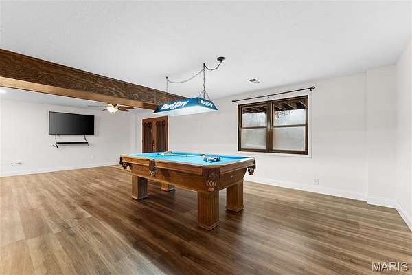 - Bar, Beamed Ceilings, Built-In Features, Natural Woodwork, Pantry, Wet Bar, Workshop/Hobby Area