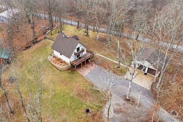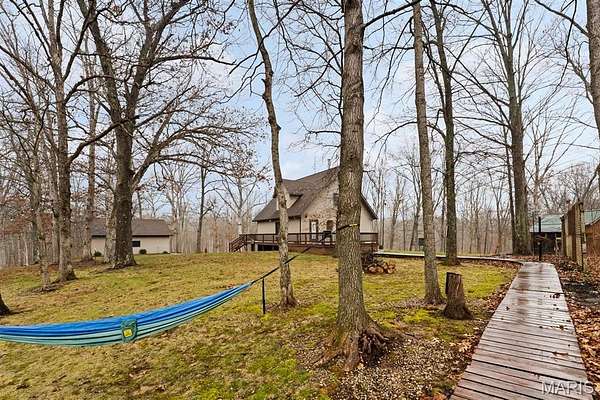 Outside, thoughtful improvements enhance both beauty and function. Updated landscaping, a new retaining wall, and recently cleared underbrush open up the wooded acreage while maintaining its natural beauty. A termite bait system installed in 2024 and serviced quarterly provides added peace of mind. Wood and stone walkways wind through the open lawn, and Edison lights are strung overhead across the spacious yard, creating an evening backdrop that serves as the finishing touch to the outdoor space.