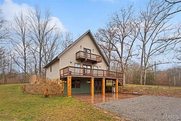 Nestled among the trees on six acres, this home offers over 2,000 sq ft of finished living space, and the perfect balance of privacy and convenience. A curved driveway guides you in, where the A-frame home and oversized garage come into view against the backdrop of mature trees, offering an impressive introduction to the property.