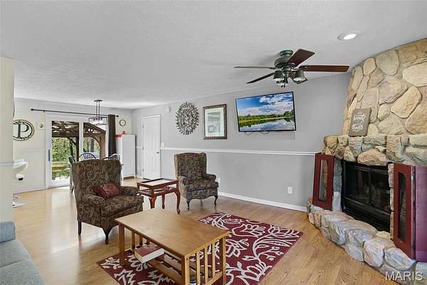 Step inside and you’re welcomed by a warm, open floor plan designed for both comfort and connection. The living room features a stunning stone gas fireplace, creating a cozy focal point that flows seamlessly into the dining area which is perfect for gatherings both large and small. The fully equipped kitchen offers an abundance of cabinetry and a convenient breakfast bar, making everyday living and entertaining effortless.
