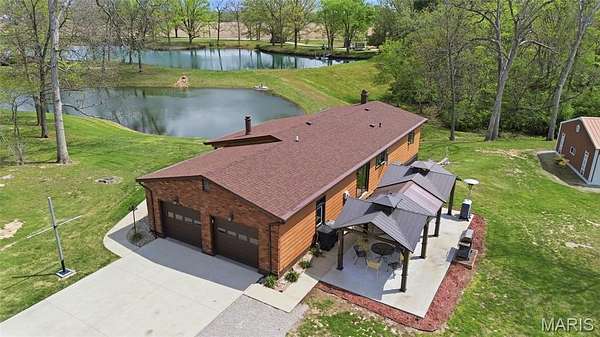 Situated on 3.46 acres, this property invites you to slow down and soak in the beauty that surrounds you. Enjoy not one, but two ponds. A private pond and a larger shared pond both stocked with fish and alive with natural charm. Imagine yourself enjoying your favorite beverage on the covered front porch or unwinding on the concrete side patio, all while taking in the scenic views of the ponds and beautifully landscaped yard. Entertain with ease on the expansive patio beneath the covered pergola, or spend your evenings gathered around the firepit, watching ducks glide across the water, turtles bask in the sun, and deer roam gracefully through the landscape.