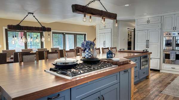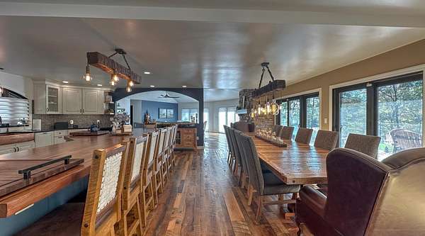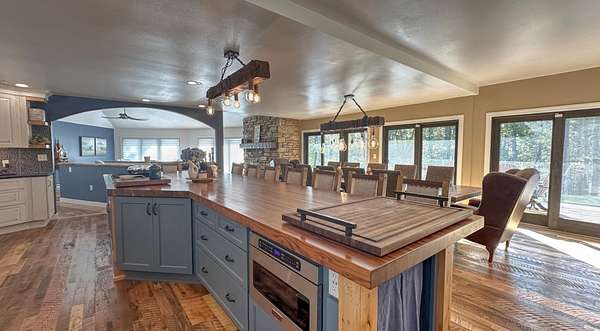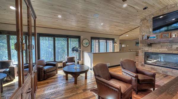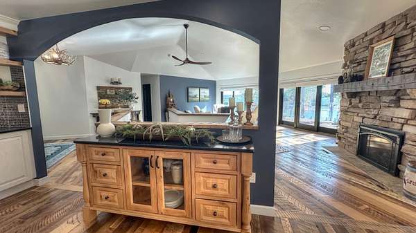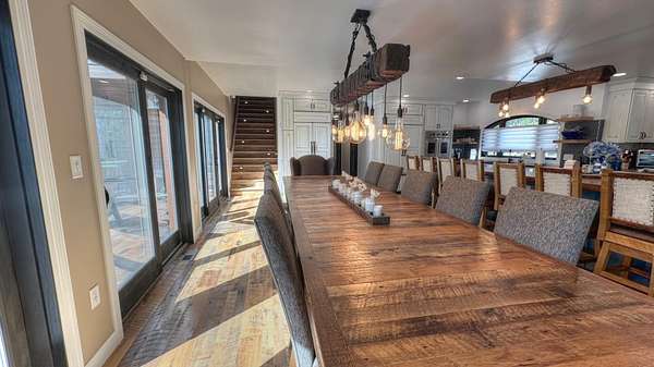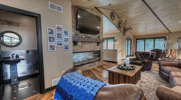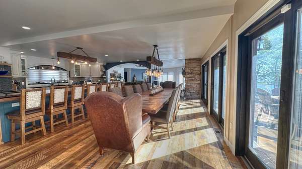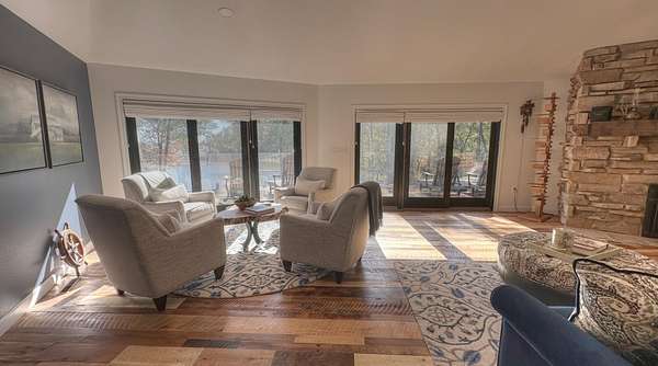 EXECUTIVE RETREAT ON LAKE NOKOMIS Experience unparalleled luxury at this masterfully designed lakefront estate, where every detail has been curated for the discerning buyer seeking a true respite from the world. This is more than a home; it is a sophisticated sanctuary offering the perfect balance of grand entertaining spaces and intimate private retreats. THE GOURMET KITCHEN The heart of the home is a chef's masterpiece, designed for large-scale hosting. It features a massive butcher-block island with seating for eight, dual cabinet-style refrigerators, two dishwashers, and two built-in ovens. High-end solid surface countertops are complemented by twin copper undermount sinks and a dedicated Butler's Pantry, ensuring seamless service for any occasion. PALATIAL PRIMARY SUITE Located on the main level, the Primary Suite is a world unto itself. A double-sided gas fireplace creates a warm ambiance for both the sleeping quarters and the private lounge. The spa-inspired ensuite boasts an enormous walk-in stone shower, a custom walk-in closet/salon, and a private laundry room for ultimate convenience. GUEST ACCOMMODATIONS & ENTERTAINMENT Five additional bedroom suites provide luxury and privacy for guests, each offering direct exterior access to scenic decks or patios. The upper level is an entertainment powerhouse, featuring soaring wood ceilings, a bar/games room, a private office, and an expansive deck with an external entrance-perfect for a home business or a secluded getaway. LAKE LIFE & AMENITIES Professional-grade outdoor features include a rare boathouse equipped with a rail system for easy watercraft access. After a day on Lake Nokomis, retreat to the oversized, heated garage, which houses a private hot tub-a unique touch for year-round relaxation. With meticulous craftsmanship and premium upgrades throughout, this Lake Nokomis crown jewel offers a lifestyle of comfort, privacy, and prestige. Able to accept electronic Earnest Money.