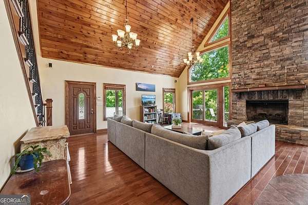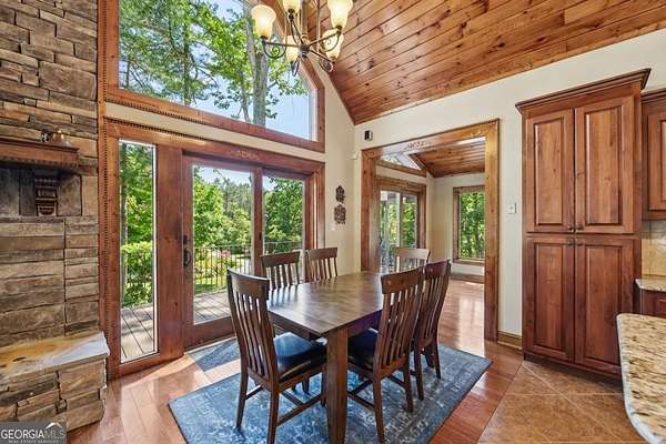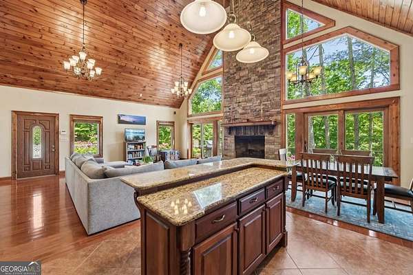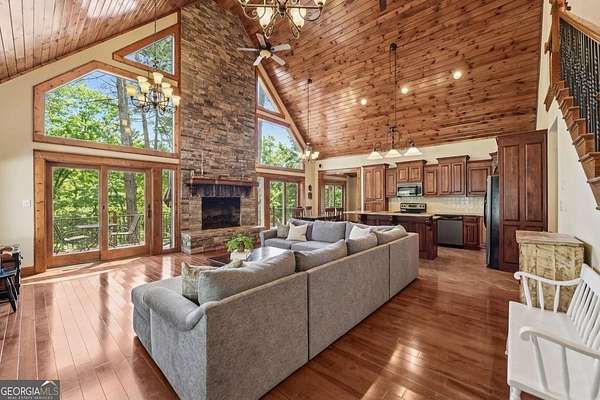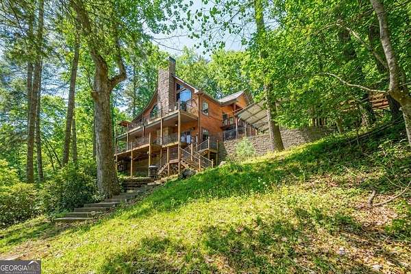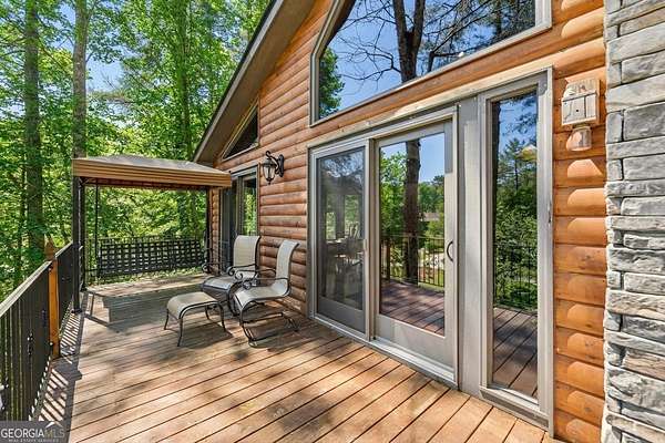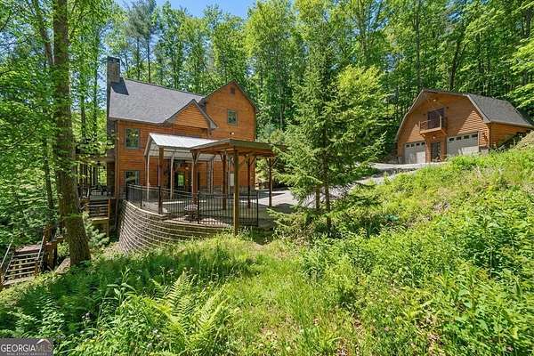 Custom Log Cabin on 2.85 Acres + 4BR/3.5BA + 5,000+ Sq Ft - Finished Terrace Level, Multiple View Decks, Detached Garage/Workshop + Creek Setting Welcome to 218 Blue Gate Lane, Dahlonega, GA 30533-a true North Georgia retreat that delivers the keywords buyers (and search algorithms) love: custom log cabin, acreage, 4 bedrooms, 5,000+ sq ft, finished terrace level, and multiple outdoor living spaces surrounded by mature woods. Set on approximately 2.85 private acres, this home offers the perfect blend of "mountain lodge" character and the space to host, gather, and unwind-ideal as a full-time residence, a weekend escape, or a property with strong investment potential (buyers to verify any intended use and local requirements). Inside, the home lives large with a dramatic vaulted great room, rich wood ceilings, and a stunning stone fireplace anchoring the main living space. An open flow connects the living area to the kitchen and dining-built for entertaining with generous workspace, warm finishes, and the kind of cabin atmosphere buyers come to Dahlonega to find. Large windows bring in natural light and frame peaceful wooded views, creating that "treehouse" feeling throughout. Outdoor living is a standout feature: enjoy multiple oversized decks and covered spaces designed for grilling, relaxing, and hosting-whether it's coffee in the morning or evening gatherings under the canopy. A unique spiral staircase adds character and connects outdoor levels for easy flow. Downstairs, the finished terrace level expands your options with a large secondary living/recreation space, bar/kitchenette-style functionality, and flexible rooms perfect for guests, hobbies, fitness, or media space-making the home exceptionally adaptable for today's lifestyles. The property also offers rare utility for mountain living with additional structures and parking-ideal for storing lake toys, outdoor gear, tools, and equipment-plus room for a workshop setup. The natural setting is the finishing touch, with wooded privacy and a picturesque creek/stream backdrop that enhances the "mountain retreat" experience. Convenient to downtown Dahlonega, wineries, hiking, and all the best of North Georgia, 218 Blue Gate Lane is the kind of property that's hard to replicate-space, character, and lifestyle in one memorable package. Disclaimer: All information deemed reliable but not guaranteed and should be independently verified. Photos & lot lines may be virtually staged to assist buyers in visualizing the property's potential. Contact the listing agent for more information or to schedule a private showing.