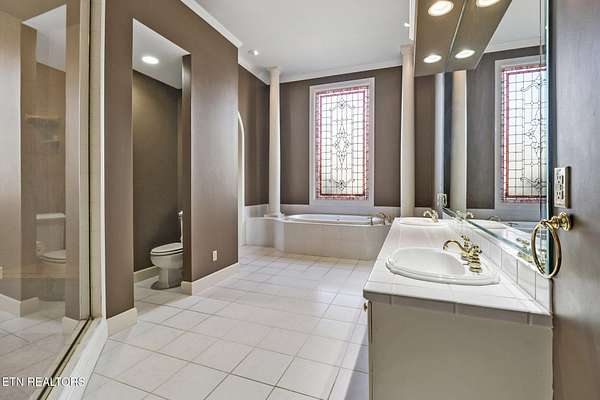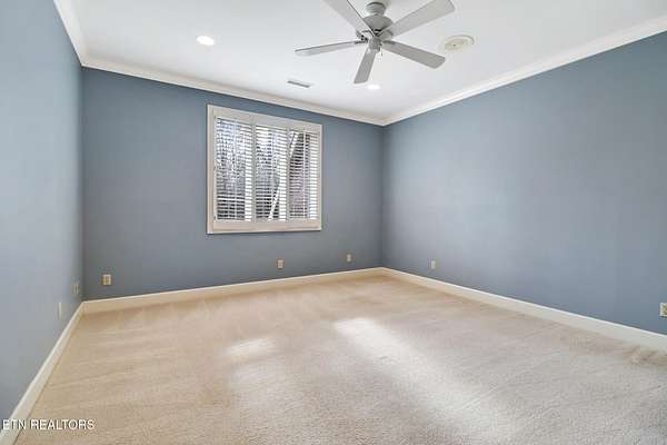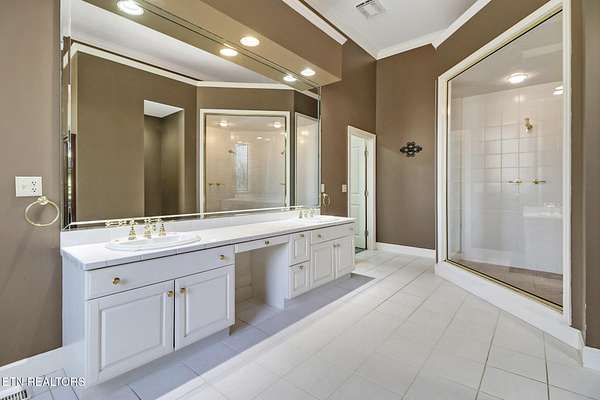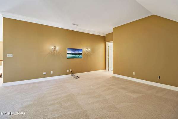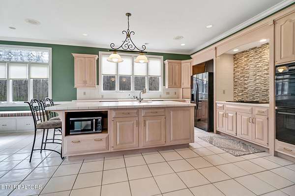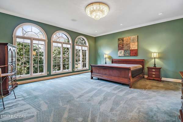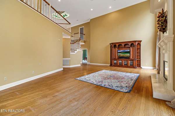 Welcome to this exceptional all-brick estate offering 5,758 square feet of living space, perfectly positioned on 2.4 private acres in a quiet cul-de-sac with no HOA and low property taxes. Designed for both elegance and functionality, the home features a main-level primary suite with 10-foot ceilings, an oversized walk-in closet, and a spa-inspired walk-in shower. The heart of the home is the impressive living room, highlighted by soaring 20-foot ceilings, a gas fireplace, and a built-in entertainment system, creating a dramatic yet inviting space for gatherings. The kitchen offers an abundance of natural light and is complete with a walk-in pantry. A separate laundry room and full bath add convenience and thoughtful design to the main level. Enjoy peaceful wooded views and the sound of the creek from the expansive rear deck, offering exceptional privacy and a true connection to nature. The three-car garage provides ample space for vehicles, storage, and hobbies. Upstairs, you'll find three additional bedrooms, two more full bathrooms, and a secondary entertainment or flex space ideal for a media room, game area, or home office. The finished walk-out basement room offers incredible versatility and doubles as a safe room or storm shelter, providing both comfort and peace of mind. Additional highlights include timeless brick construction and a location that blends luxury living with the lifestyle perks of Tennessee's Golf Capital. Lake Tansi and Fairfield Glade Golf membership lots are available with purchase. This is a rare opportunity to own a private, estate-style home offering space, quality, and freedom without HOA restrictions.