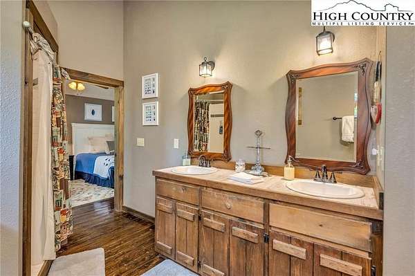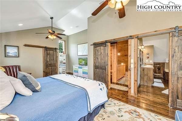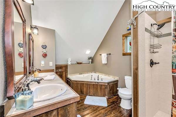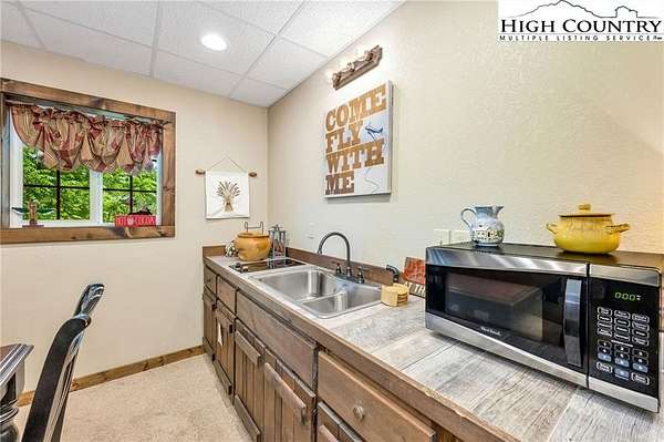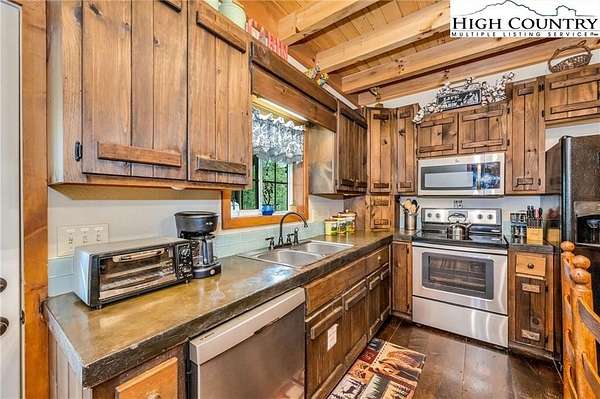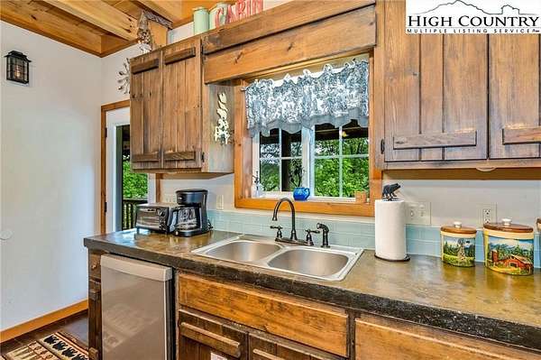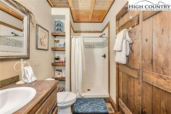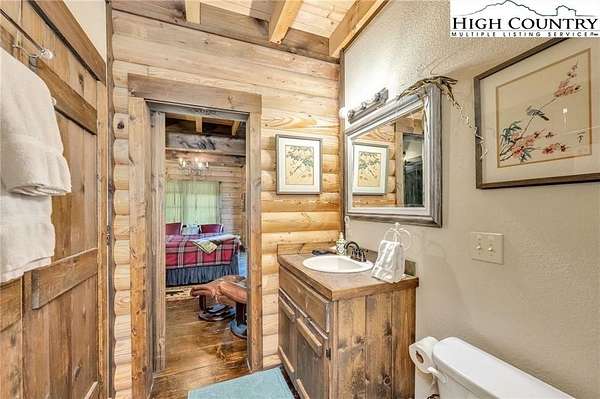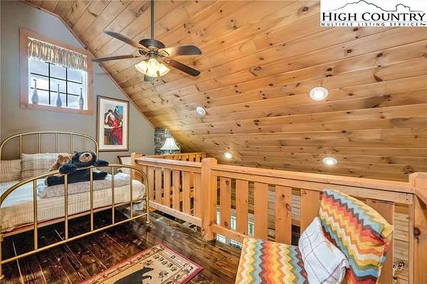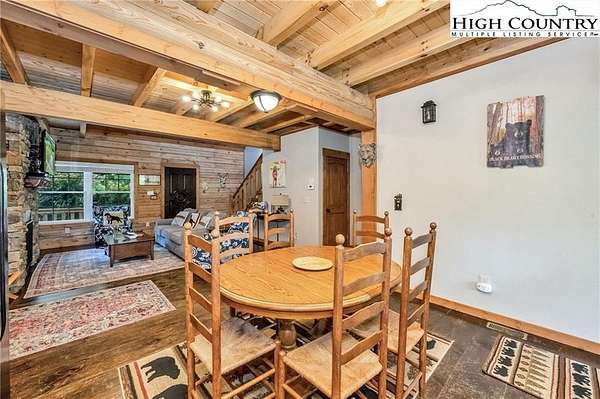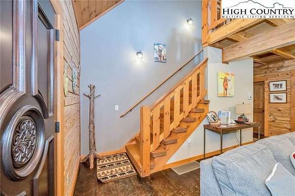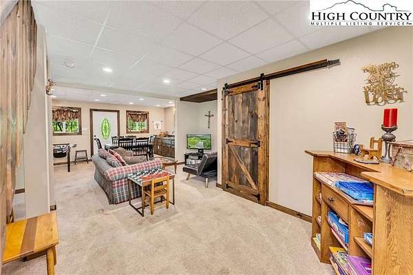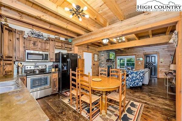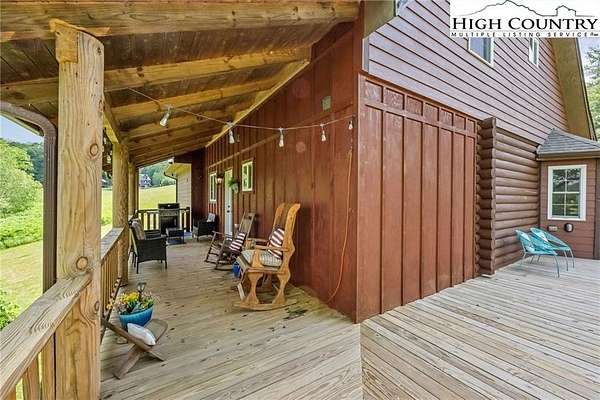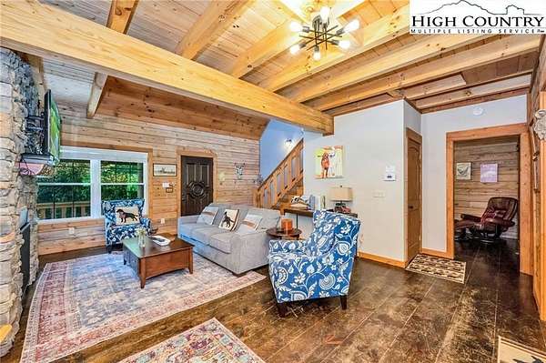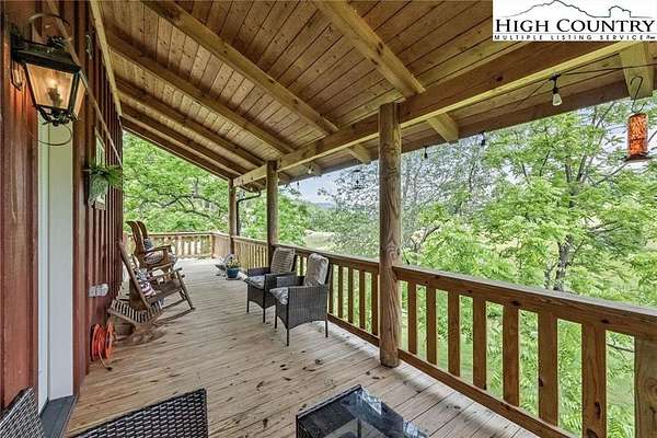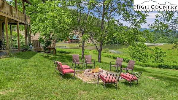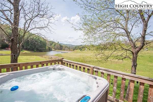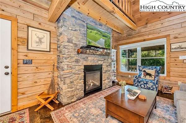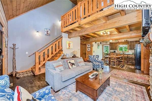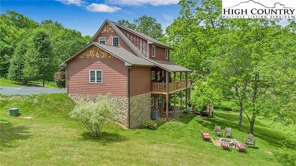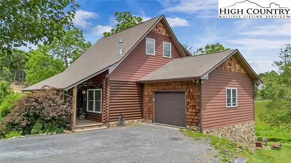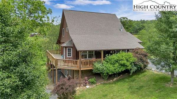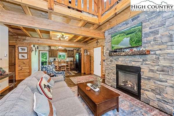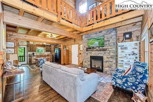 Charming Mountain Retreat with Pond Frontage in Canawhay - Nestled on a picturesque 2-acre lot that borders a tranquil pond in the desirable Canawhay community, this quality-crafted custom home blends rustic charm with modern comfort. The thoughtfully designed exterior showcases a beautiful mix of logs, board and batten, durable HardiePlank, and cedar shakes, all wrapped in an expansive covered deck that spans the front and back--with an open-air section perfect for relaxing and enjoying peaceful pond views. Inside, the main level welcomes you with a spacious open-concept layout that connects the living room and eat-in kitchen. A cozy stone fireplace anchors the living area, creating a warm and inviting space for gathering on cool mountain evenings. The kitchen features stainless steel appliances and distinctive concrete countertops that add a unique touch of style. Also on the main level is a convenient half bath with laundry; a guest bedroom with deck access, a private en suite bath with a tiled shower; and an attached one-car garage. Upstairs, a cozy loft overlooks the living area and leads to a spacious primary suite. The en suite master bath offers a luxurious retreat with a whirlpool tub, walk-in tile shower, and matching concrete countertop. The finished lower level provides excellent flexibility, featuring a private living space with a separate entrance, efficiency kitchen, living area, bedroom, and full bath with a tile shower--ideal for guests, in-laws, or as a separate rental unit. Whether you're looking for a full-time residence, a mountain getaway, or a turn-key rental investment with a proven history, this home offers it all. It comes fully furnished--including the hot tub--and is located just a short drive from New River State Park, providing easy access to river adventures, hiking, and the best of High Country living. Seller offering 10K credit to refinish or replace wood flooring.