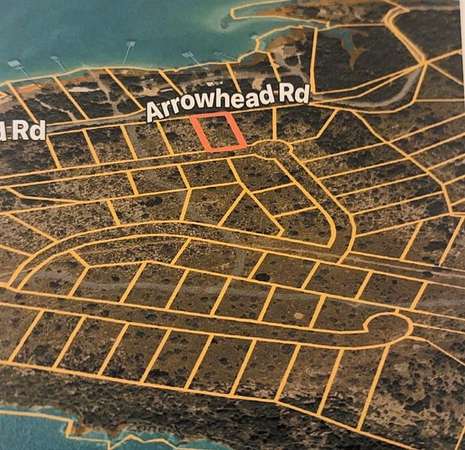 FM 1148 East, beyond Lakeshore Drive, on Arrowhead Road, follow until road curves right, but you should go straight onto dirt road. You'll see a rock entrance. Enter and you'll be in Clearwater Point. Locate Lot 218