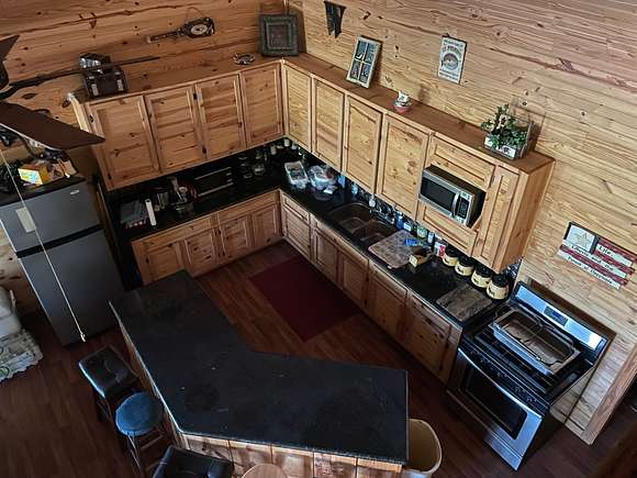 Cozy Cabin: The approximately 1800 square foot cabin provides a warm and inviting living space with 3 bedrooms and 1 bathroom. Designed for off-grid living, the cabin runs on propane and a generator, with water and electric utilities available at the road for easy connection.