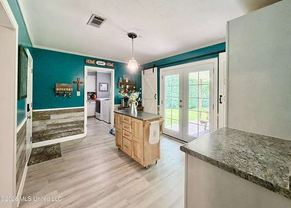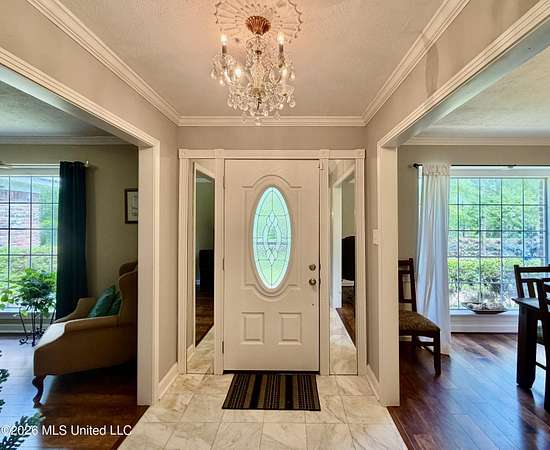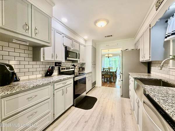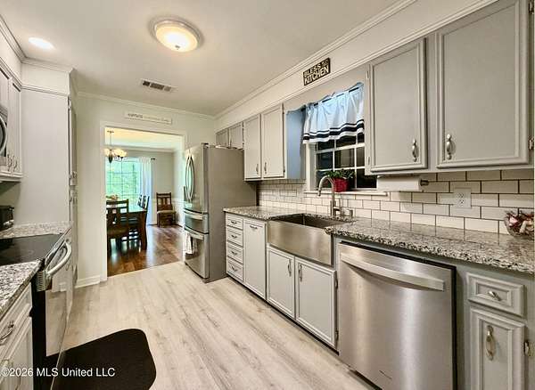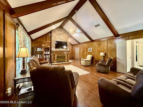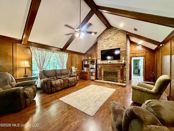 QUALIFIES FOR USDA LOAN IF YIU QUALIFY - NO DOWNPAYMENT**Spacious and beautifully updated, this 4 -bedroom, 2.5 - bath home offers both comfort and elegance. Featuring a formal dining room and a formal living room, it's perfect for entertaining both inside and out. The large gathering room provides a warm, inviting space for everyday living. The gas log fireplace ads charm and coziness to the home. The kitchen has been tastefully updated, to include granite countertops and subway tile backsplash. The primary bedroom suite includes a large walk-in closet. The primary bathroom has a body shower which is fabulous. The vanity features two sinks. There are also 3 other bedrooms and a guest bath. the back porch is covered and has brick paver floor. All of this loveliness over looks 2.24 acres. This home is situated in the heart of Raymond