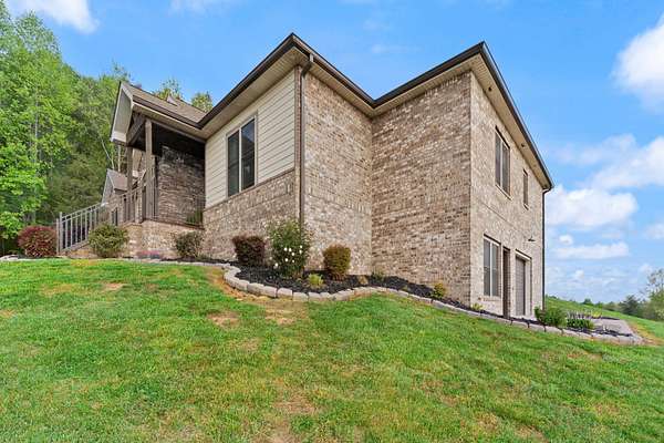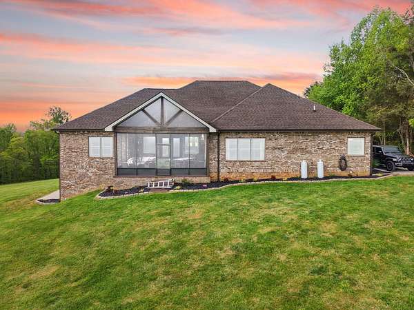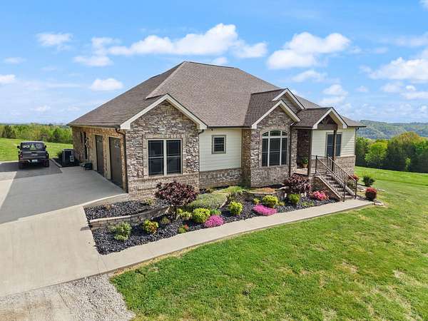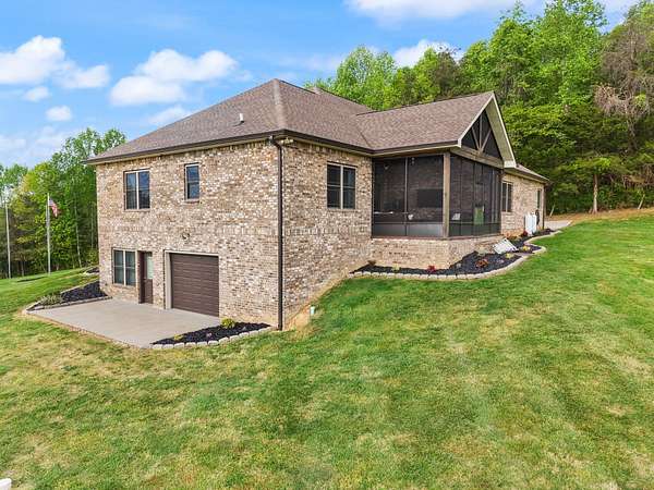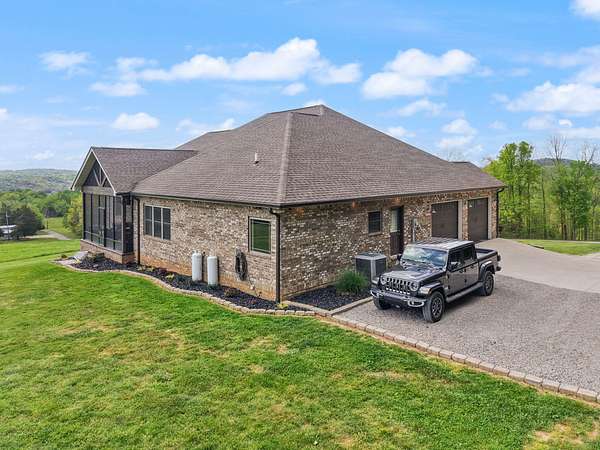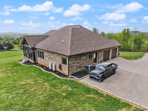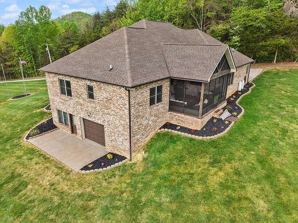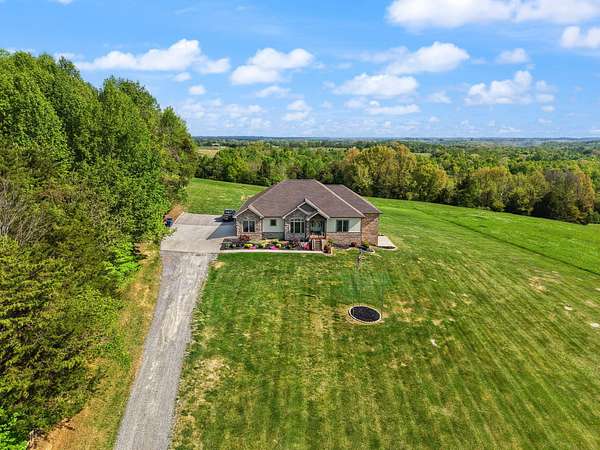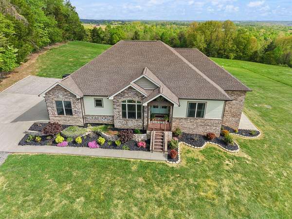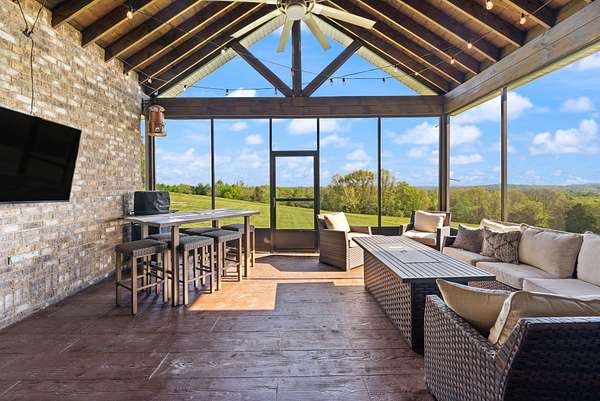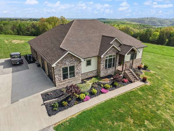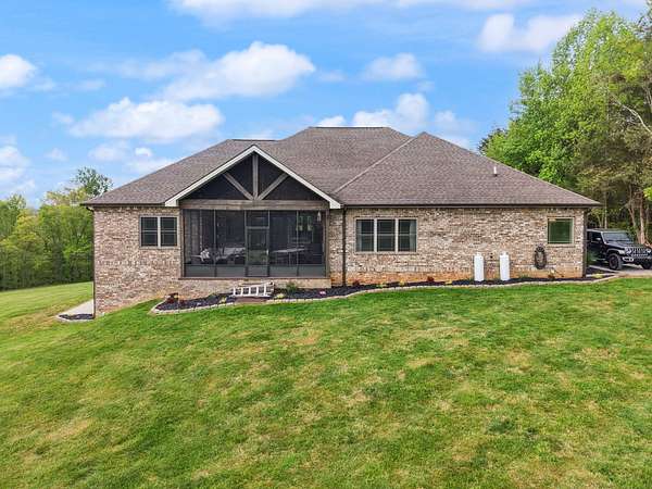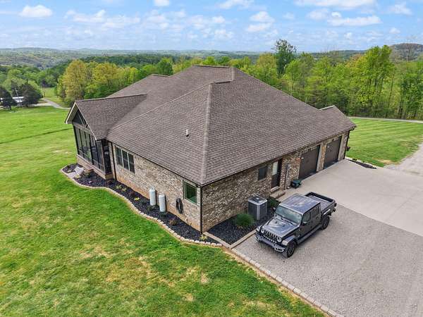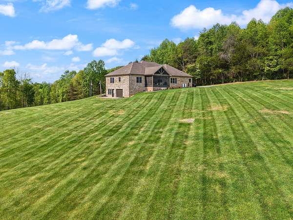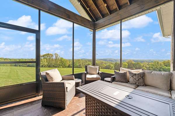 Experience the perfect blend of privacy, space, and modern comfort in this stunning 4-bedroom, 4.5-bath home offering nearly 5,000 square feet of beautifully designed living space. Nestled on 2.5 acres, this property showcases breathtaking, uninterrupted farm and mountain views that create a peaceful, scenic backdrop from every angle. Inside, you'll find soaring ceilings, an open-concept layout, and elegant modern finishes that fill the home with natural light and an inviting, airy feel. The gourmet kitchen is truly the heart of the home, featuring gorgeous handpicked granite countertops, a spacious pantry, and plenty of room for cooking, gathering, and entertaining. The centrally located great room offers the perfect place to relax, while the expansive screened-in back porch invites you to unwind, grill, and enjoy the surrounding countryside year-round, uninterrupted by anything except the sounds of nature. The luxurious primary suite is a private retreat, complete with a walk-in closet, dual vanities, a freestanding soaking tub, and a beautifully tiled walk-in shower. On the opposite wing of the home, three additional bedrooms and two full baths provide ideal space for family or guests. The walkout basement expands your living and entertaining options with a large family room, wet bar, full bath, workout area, and utility garage-perfect for hobbies, storage, or hosting. If you've been searching for space, style, and serene views, this exceptional property delivers it all. Schedule your private showing today and experience it for yourself.