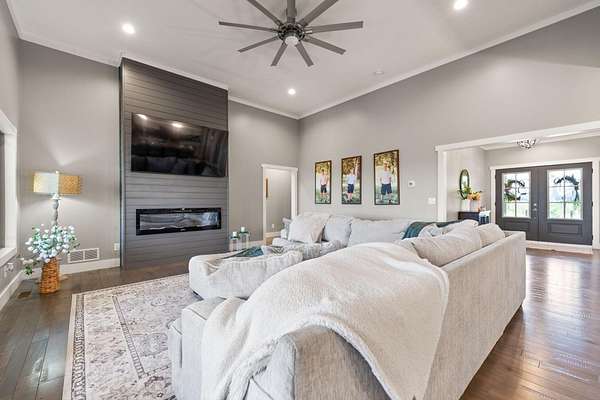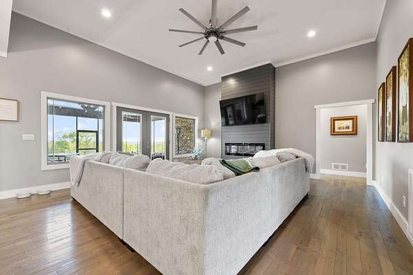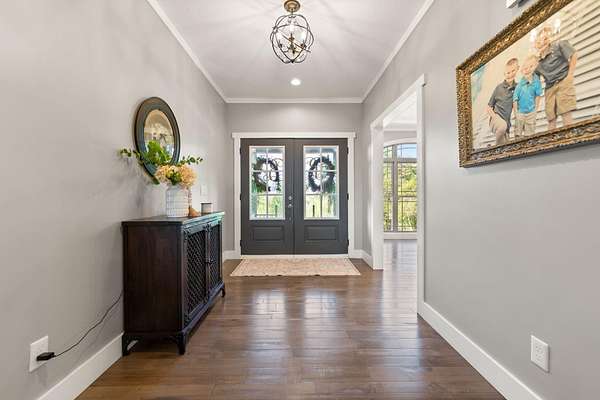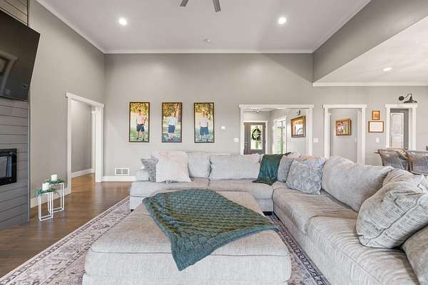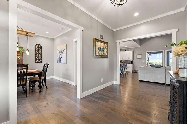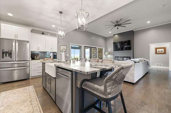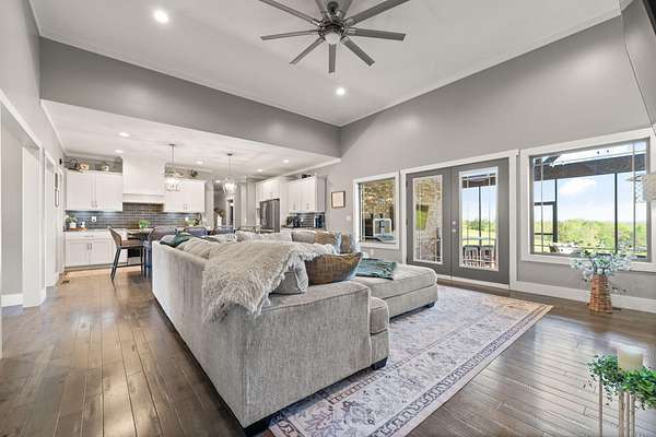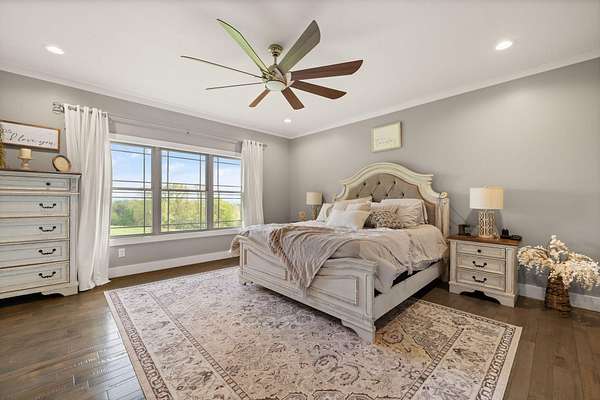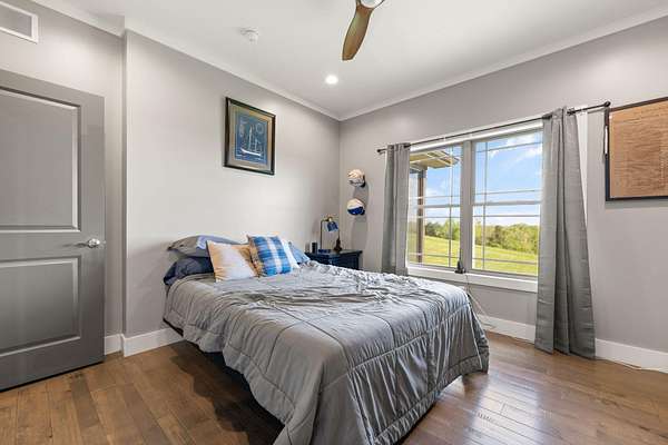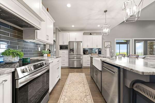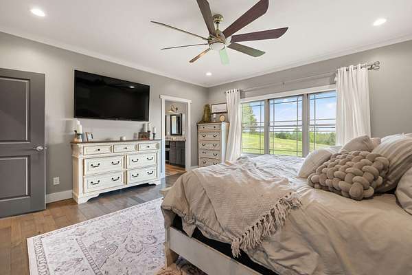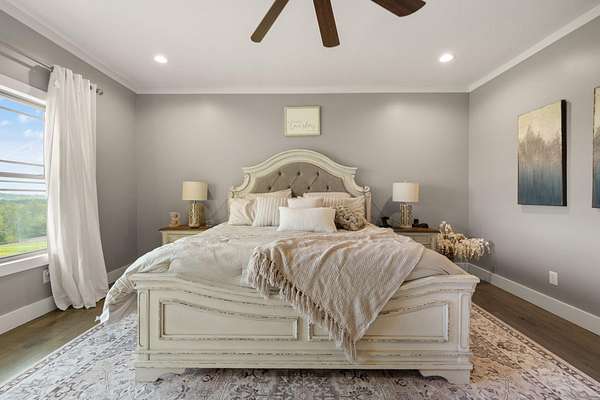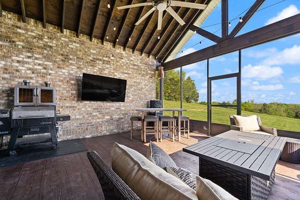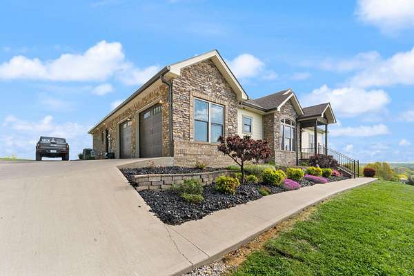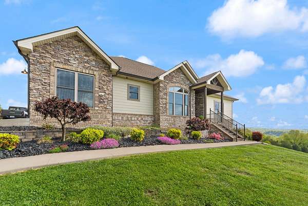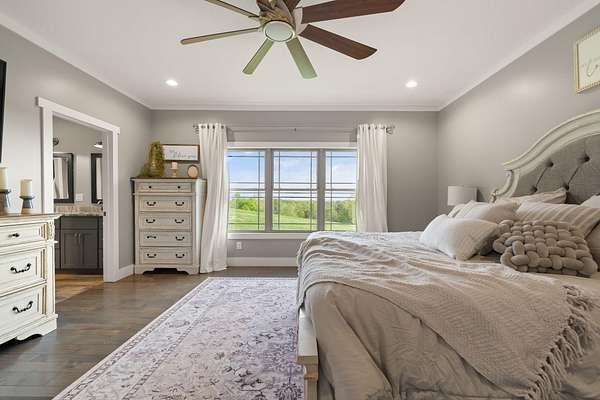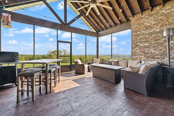 Experience the perfect blend of privacy, space, and modern comfort in this stunning 4-bedroom, 4.5-bath home offering nearly 5,000 square feet of beautifully designed living space. Nestled on 2.5 acres, this property showcases breathtaking, uninterrupted farm and mountain views that create a peaceful, scenic backdrop from every angle. Inside, you'll find soaring ceilings, an open-concept layout, and elegant modern finishes that fill the home with natural light and an inviting, airy feel. The gourmet kitchen is truly the heart of the home, featuring gorgeous handpicked granite countertops, a spacious pantry, and plenty of room for cooking, gathering, and entertaining. The centrally located great room offers the perfect place to relax, while the expansive screened-in back porch invites you to unwind, grill, and enjoy the surrounding countryside year-round, uninterrupted by anything except the sounds of nature. The luxurious primary suite is a private retreat, complete with a walk-in closet, dual vanities, a freestanding soaking tub, and a beautifully tiled walk-in shower. On the opposite wing of the home, three additional bedrooms and two full baths provide ideal space for family or guests. The walkout basement expands your living and entertaining options with a large family room, wet bar, full bath, workout area, and utility garage-perfect for hobbies, storage, or hosting. If you've been searching for space, style, and serene views, this exceptional property delivers it all. Schedule your private showing today and experience it for yourself.
