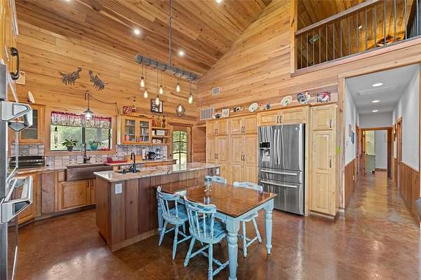 Wanna beat the Texas heat? Check out this cool property! 2016 build home, on 47 acres. Featuring two bedrooms, two baths, with a large upstairs loft PERFECT as guest quarters, a game room, office, or a study. The open concept living kitchen space garners big, beautiful views over the pristine property grounds. Vaulted ceilings, granite countertops, sealed concrete flooring, and a generous utility room are some great features of this beauty!