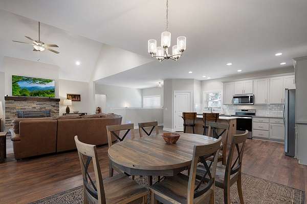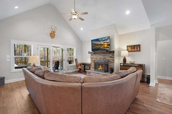 Welcome to 218 Oak Wood Lane in beautiful Ellijay, Georgia. As you step onto the inviting covered front porch, you'll envision peaceful mornings taking in breathtaking mountain views and crisp North Georgia Mountain air. This stunning 2023-built home offers 4BR/3BA and over 3300 sq ft of thoughtfully designed living space on 3.71 private acres. Inside, the heart of the home is the open great room, centered around a cozy fireplace and flowing seamlessly into the kitchen and dining area. The kitchen features abundant cabinetry, a pantry, ample prep space, and a functional island providing additional seating and workspace while maintaining an open connection to the living areas. Just off the great room, an impressive covered back deck overlooks the private fenced backyard, creating the perfect setting for entertaining or relaxing in the serene surroundings. The main level offers convenient living with two bedrooms, including an exceptional primary suite featuring a gorgeous tiled shower, soaking tub, double vanities, private water closet, and large walk-in closet. A spacious guest suite and a laundry room leading directly to the attached garage complete the main floor. The finished terrace level includes two additional bedrooms, a generous recreation room, and a kitchenette with wet bar, ideal for guests, multi-generational living, or extended entertaining. Step outside to unwind in the hot tub, and enjoy peace of mind with a whole-house generator. Located in the gated High River subdivision, residents enjoy access to Mountaintown Creek for trout fishing and Lecroy Lake, with the nearby Coosawattee River offering tubing, fishing, and kayaking, and Carters Lake just a short drive away. This property combines newer construction, acreage, privacy, and elevated mountain living -- all within easy reach of downtown Ellijay.