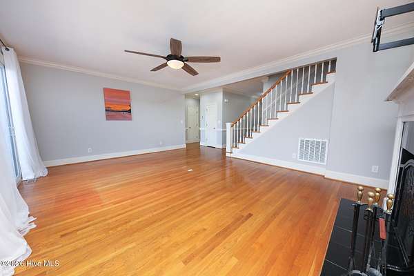 - Blinds/Shades, Bookcases, Ceiling Fan(s), Eat-In Kitchen, High Ceilings, Walk-In Closet(s), Walk-In Shower