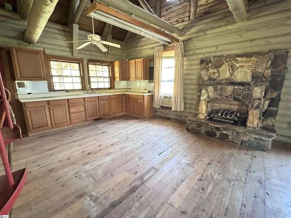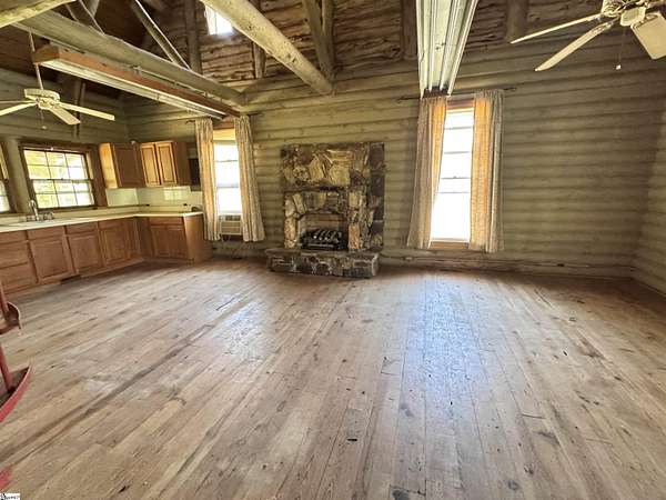 54.8 Acres in Dacusville with over 3,000 foot of road frontage! The property spans across both sides of the road which should provide multiple opportunities for mountain views. Small creek also on the property. There are multiple structures on the property, which need renovation and will be sold in as is condition. The structures include a 1,731 sf traditional log cabin with wrap around front porch, 2 bedrooms and a large cathedral ceiling living room and kitchen area. There is a large 2,475 sf barn also with another 812 sf of partially finished storage room on the second floor. On the other side of the road there is another partially constructed 1,334 sf home with unfinished basement. Family cemetery on property that can be moved. Don't miss this rare opportunity!!