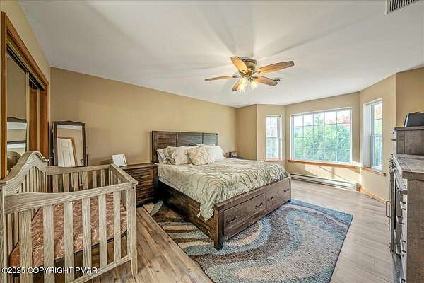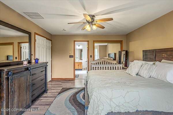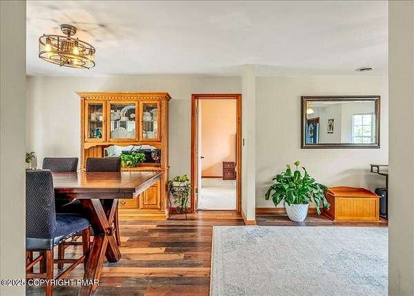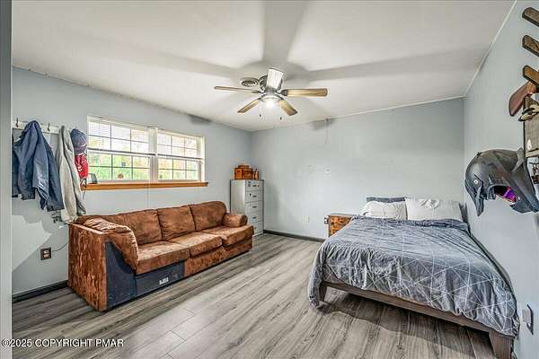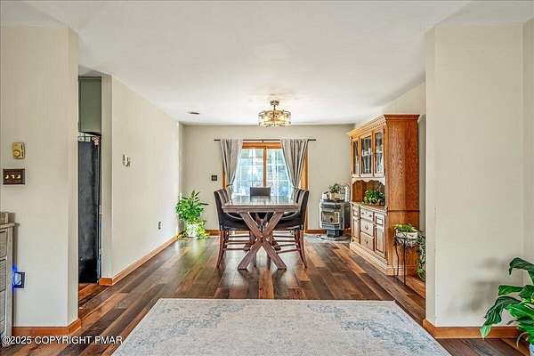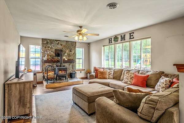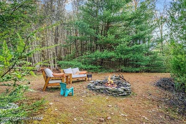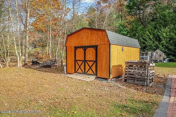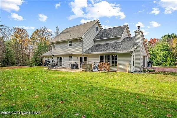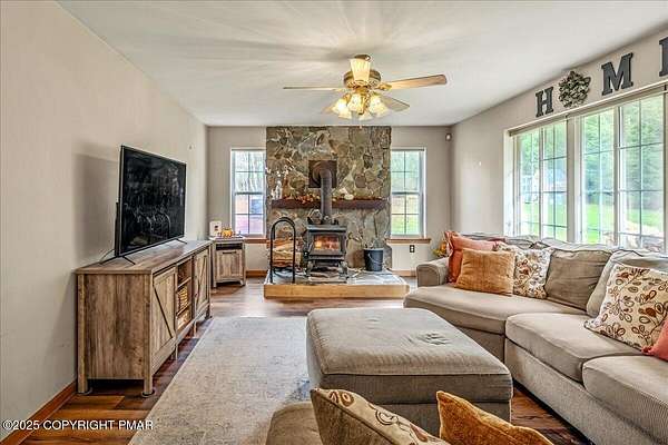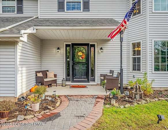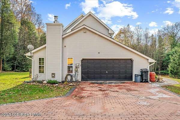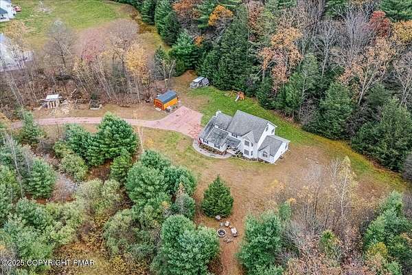 Tucked back from the road on 3.56 peaceful acres, this spacious 4-bedroom, 3.5-bath home offers space, privacy, and charm in the desirable Pleasant Valley School District-with NO HOA! A beautiful paver driveway leads the way to this well-maintained property featuring an inviting fire pit area, a chicken coop, and plenty of space to enjoy the outdoors. Inside, you'll find a bright and open floor plan with a comfortable flow between the kitchen, dining, and TWO living areas. A cozy wood stove adds warmth and character, while an additional family room provides extra room to relax or gather and 1st floor laundry and a convenient and functional half bath check even more boxes! This home features TWO large primary suites-one on each level-each with a large ensuite bath offering double vanities, jetted tubs, and walk-in showers. Two additional generously sized bedrooms complete the 2nd floor. The oversized walk-up attic offers endless potential for storage or future expansion, and the 2-car garage provides ample parking and workspace. Located in a quiet, scenic area of Saylorsburg, this property combines rural tranquility with easy access to major routes, shopping, and outdoor recreation throughout the Poconos!