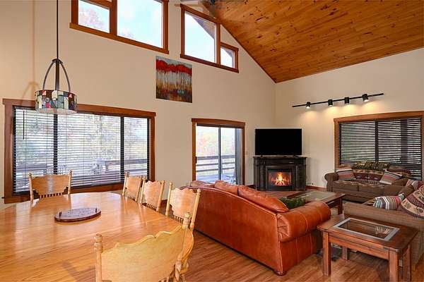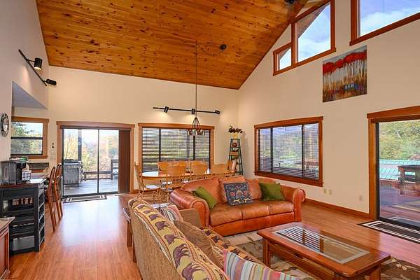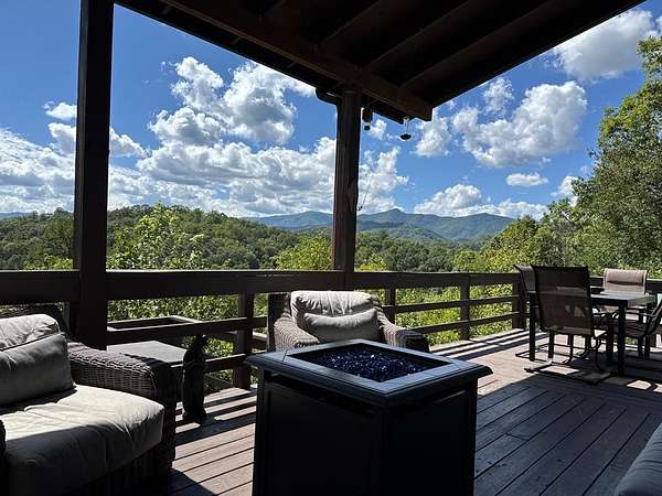 Discover a true beauty in the mountains! Just 2 minutes from Hwy 74, this exceptional view home offers postcard-worthy panoramas of the Nantahala Gorge, Cheoah Bald, and multiple mountains. Enjoy easy year-round access with a flat driveway and a surprisingly level, usable yard-perfect for pets, play, gardening, or entertaining. A charming bonus "yard-house" provides additional space for guests, kids, hobbies, or overflow needs. Wide decks and porch space with step down decking with hot tub.Crafted by Baxter Construction, this thoughtfully designed home places you close to premier adventures including NOC, Cardinal Coffee, Finger Lake, Tsali Recreation, and Lake Fontana-where community access allows convenient foot entry to the shoreline.The original garage has been converted into valuable shop/storage space and a separate game room. Already a proven rental performer, this property offers flexibility-continue on a rental program or make it your private mountain retreat. 2 bedrooms with bonus on main. 2 full baths on main along with laundry. Upstairs is enclosed primary ensuite with sitting room. A rare combination of big views, flat yard, and convenience-this one truly stands apart!