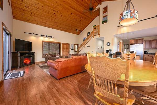 - Bonus Room, Cathedral/Vaulted Ceiling, Kitchen/FR Combo, Living/Dining Room, Main Level Living, Open Floorplan, Pantry, Primary On Main Level, Primary W/Ensuite, Rec/Game Room, Walk-In Closet(s)