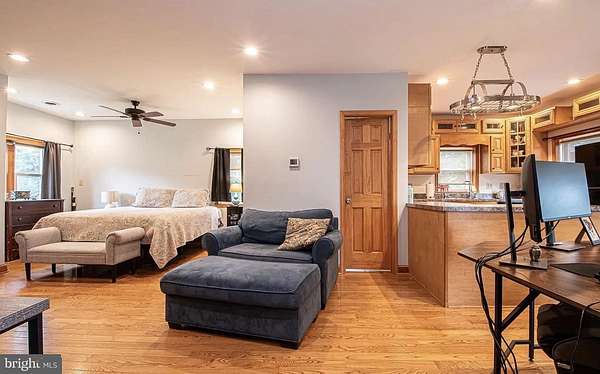- Additional Stairway, Breakfast Area, Ceiling Fan(s), Country Kitchen, Open Floor Plan, Pantry, Recessed Lighting, Table Space Kitchen, Walk-In Shower Bathroom, Window Treatments, Wood Floors
