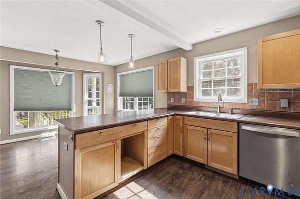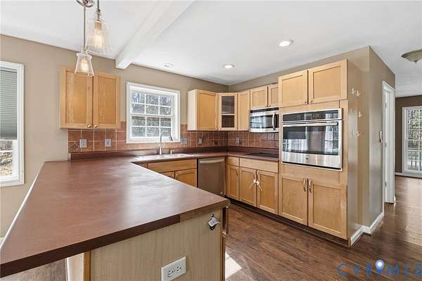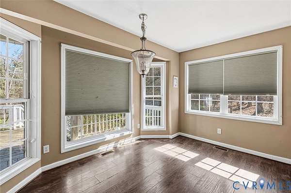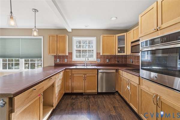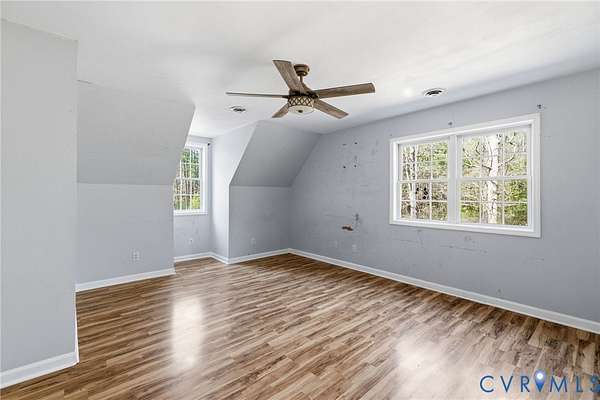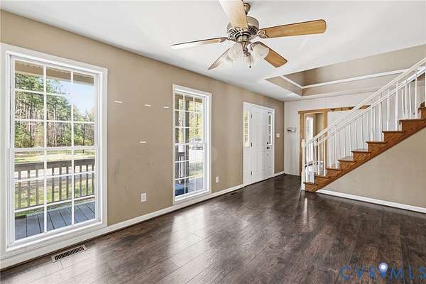 Welcome to over 8 acres of your own private retreat in beautiful Moseley! This charming home offers 3 bedrooms, 2.5 baths, and 2,288 sq. ft. of thoughtfully designed living space, all set on a picturesque lot surrounded by mature trees for ultimate privacy. The inviting exterior showcases a full country-style wraparound porch, perfect for relaxing mornings or unwinding in the evenings. Step inside to a bright and airy family room featuring LVP flooring, a ceiling fan, and an abundance of natural light. A convenient laundry room includes built-in cabinetry and a utility sink for added functionality. The well-appointed kitchen is designed for both everyday living and entertaining, complete with a peninsula island with bar seating, stainless steel appliances, tile backsplash, wall oven, smooth cooktop, and a cozy breakfast nook overlooking the private backyard. Just beyond, an additional family room offers a stunning gas fireplace with floor-to-ceiling stone surround and recessed lighting, creating a warm and inviting gathering space. The first-floor primary suite is a true retreat, featuring dual vanities, a garden tub, walk-in shower, spacious walk-in closet, and private access to the outdoors. A dedicated home office on the main level provides the perfect space for remote work. Upstairs, you'll find two generously sized bedrooms, a full bath with a tub/shower combo, and a loft area that overlooks the family room below. Ample storage is available with walk-in storage space and a pull-down attic. Enjoy outdoor living on the large rear deck overlooking a sprawling, fenced backyard, ideal for entertaining, pets, or simply enjoying the peaceful, wooded surroundings.