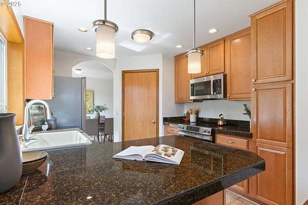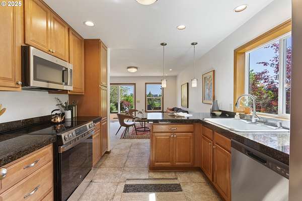 - Dishwasher, Disposal, ENERGYSTAR Qualified Appliances, Free Standing Range, Free Standing Refrigerator, Granite, Microwave, Pantry, Plumbed For Ice Maker, Range Hood, Stainless Steel Appliance, Tile