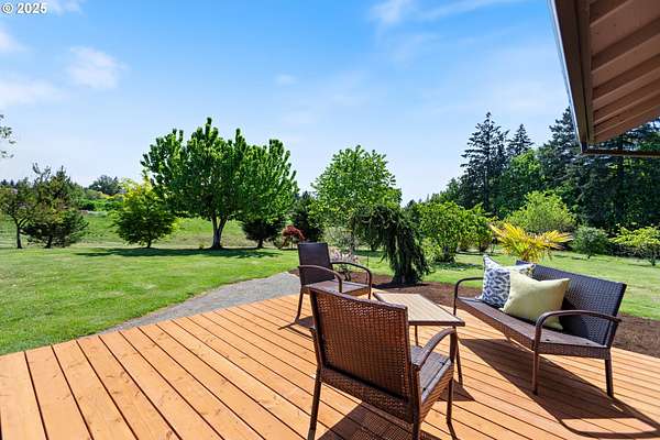 29.43-acre Willamette Valley property offering certificated water rights, a 60*84 post barn w/ mezzanine, commercial-scale infrastructure, and a turnkey setup for agricultural or business use. The well-maintained 3-bedroom, 2-bath home features fresh interior paint, new carpet, and a brand-new deck overlooking landscaped grounds with ornamental plantings and fruit trees.At the heart of the property stands an impressive 60*84 two-level post-frame building, ideal for agri-business, commercial operations, or large-scale storage. The main level accommodates equipment, processing, retail, or production, while the upper mezzanine provides flexible space for offices or additional storage. An ADA-compliant bathroom enhances usability for both customers and employees, and the generous clear-span design supports a wide range of uses-from farm store to light production facility.Fertile Amity loam soils support productive farming, with additional wooded land offering a peaceful, private backdrop. The property is served by four wells and benefits from fully certificated water rights (Certificates #98996 & #93040), including irrigation of 15.4 acres and nursery use on 5.4 acres, providing reliable water access and strong agricultural value.Sale subject to seller's 1031 exchange at no cost to buyer. Listing broker is related to seller.