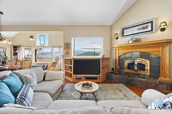 Custom Craftsman with Sunrise & City Light Views...Rarely does a home offer this blend of custom design, breathtaking views, and proximity to town. This custom Craftsman ranch captures panoramic valley vistas, twinkling city lights, and stunning sunrises.Flagstone accents enhance the entry, courtyard, and walkways, creating a warm, inviting setting with a peaceful outdoor retreat. Inside, 15' vaulted ceilings, hardwood floors, and expansive windows fill the home with natural light and showcase the surrounding landscape. Slate flooring and fireplace accents add timeless character.The open living area flows into the kitchen, ideal for everyday living and entertaining. Features 3 bedrooms and 3 baths, including a primary suite with a cozy wood stove.Expansive decks maximize outdoor living and views. Additional highlights include a 3-bay garage and owned solar.A rare custom home on a premier +/-1.51 acre view lot.