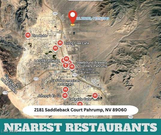Located in a quiet, rural community with easy access to nearby utilities and highways, this flat, buildable lot is just a short drive from Death Valley National Park, Ash Meadows Wildlife Refuge, and less than two hours from Las Vegas. Enjoy incredible sunsets, star-filled skies, and the peace that only the desert can provide.