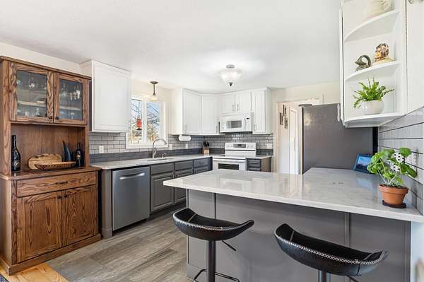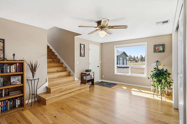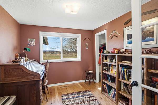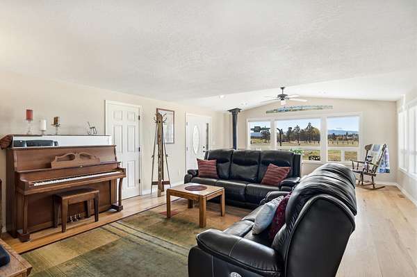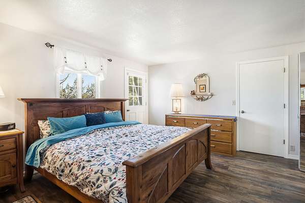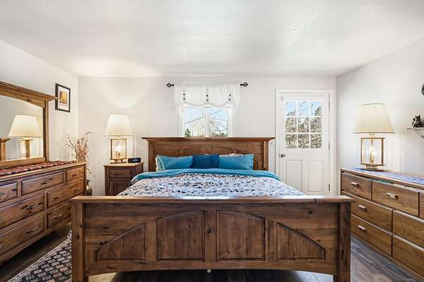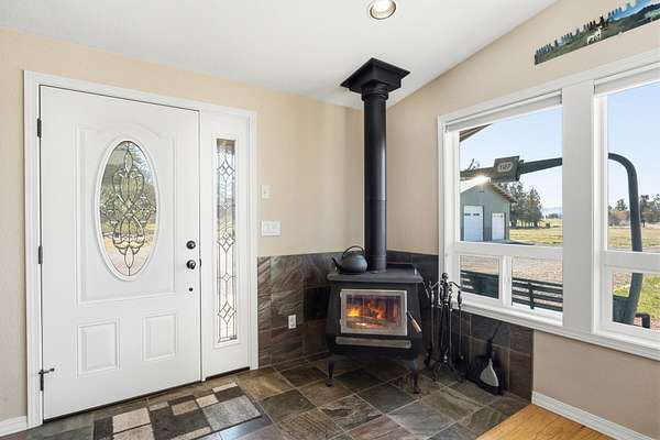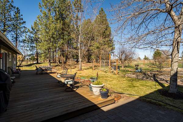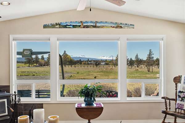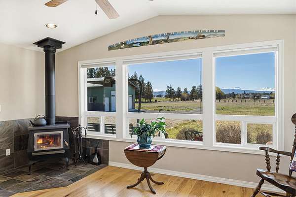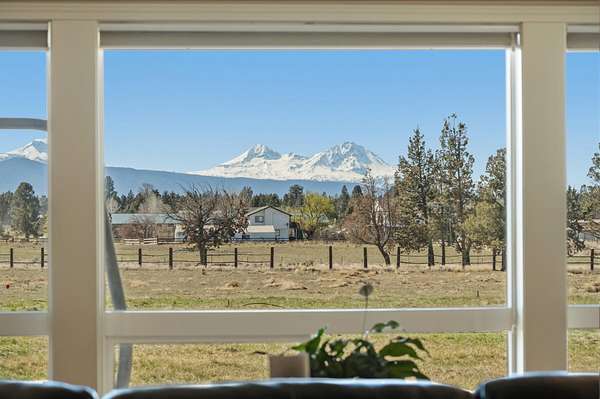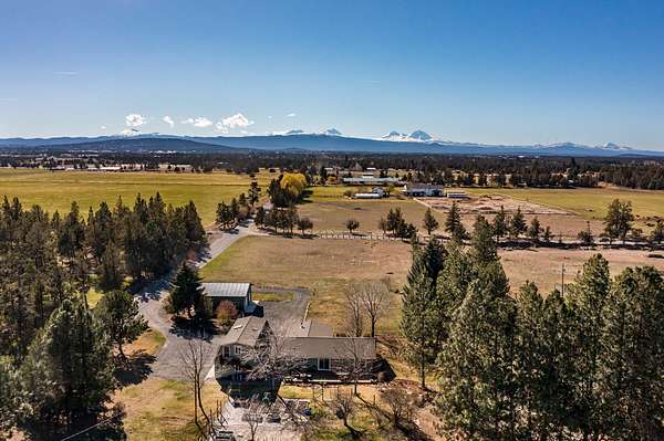 Enjoy stunning Cascade Mountain views from the front patio of this 4.54-acre property, complete with 2 acres of irrigated water rights. Step inside to a welcoming living room featuring a cozy wood-burning stove that flows into the kitchen with tile floors, granite countertops, and a sliding door leading to the peaceful backyard and deck. The main level offers two bedrooms, a full bathroom, and a dedicated office space. Upstairs, the spacious primary suite features a remodeled bathroom, walk-in closet, attic storage access, room for an additional office or flex space, and a door to stairs that takes you down to the backyard patio. Enjoy outdoor living on the upstairs deck with new Trex decking and metal railing. A 3-car attached garage and a 1,050sqft pull-through shop with doors on both ends provide ample space for RVs, boats, and extra vehicles. Whether you crave privacy, Cascade views, or room to live and play, this exceptional Bend property delivers it all!