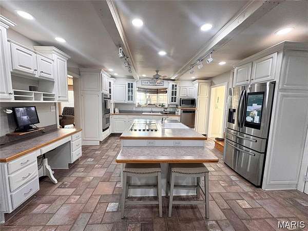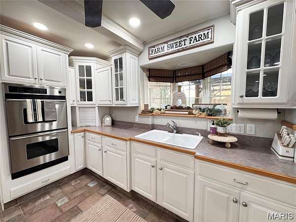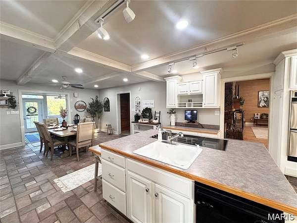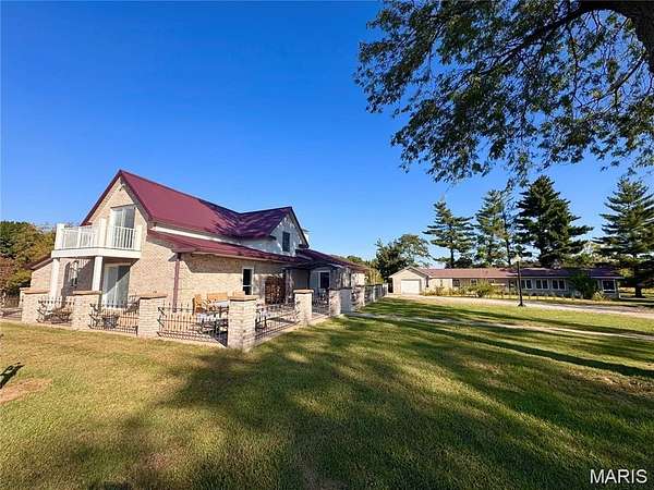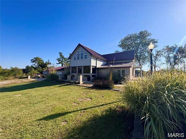 Tucked away at the end of a private drive, this extraordinary 30+/-acre estate blends the warmth of country living with the space and amenities of a true retreat. The main residence spans approx. 4,000 square feet and has been thoughtfully designed for both entertaining and everyday comfort. Four spacious bedrooms, three full baths, and two half baths offer ample room for family and guests. Two expansive living rooms anchor the home—each featuring a dramatic floor-to-ceiling double-sided fireplace that creates a striking focal point. A light-filled sunroom invites you to relax with your morning coffee while taking in serene property views. Downstairs, a finished basement with a wet bar adds the perfect setting for game nights, movie marathons, or hosting celebrations. An attached two-car garage provides convenience and easy access in all seasons. The guest house, at 1,053 square feet, is ideal for extended family, visiting friends, or potential rental income. It includes two comfortable bedrooms, a full bath, a fully equipped kitchen, its own laundry area, and an attached garage—delivering complete independence and privacy for guests. Beyond the residences, the property offers a range of lifestyle amenities. A charming chicken coop and three additional storage sheds support hobbies, livestock, or equipment needs. Endless opportunities for gardening, recreation, or simply enjoying the tranquility of nature. New furnace, Ac, Water Heater --Five minutes to Mark Twain Lake!