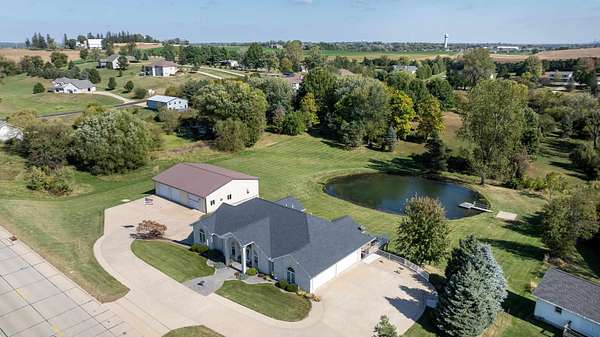 Exquisite walkout ranch on 2.35 acres with private pond and no covenants located in Asbury. Discover a truly unique and luxurious living experience in this one-of-a-kind, custom-built walkout ranch. Meticulous craftsmanship and stunning design define this 5-bedroom, 3-bath gem, where quality is evident in every detail. The gourmet kitchen with a formal dining area is an entertainer's dream, featuring a large center island and elegant granite countertops that flow into a sun-drenched, four-season room. Vaulted ceilings and a fireplace in the living room complete this open layout, creating a seamless connection to the outdoors, perfect for intimate gatherings or large celebrations. Escape to the expansive master suite, a private oasis with a double-vanity en-suite bath and a relaxing whirlpool tub. The finished walkout basement offers a spacious family room, providing a versatile space for recreation and relaxation. Outside, the possibilities are endless on the generous 2.35-acre lot, free from restrictive covenants. Enjoy serene moments by your private, stocked pond with a dock, or pursue your hobbies in the impressive 50x60 partially finished and insulated building, complete with three large overhead doors and a dedicated paint booth. Additional storage and a workshop can be found in the capped 3-car garage. Newer roof and appliances ensure peace of mind. A large composite deck and 2 patios complete the outdoor space. A wrap-around driveway offers loads of parking and great access to garages on both sides of the house.Opportunities like this are few and far between--don't miss your chance to make this extraordinary property your own. Schedule your private tour today.