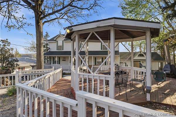 Step into a one-of-a-kind opportunity at the Lake of the Ozarks with this stunning Victorian-style home, formerly an original bed & breakfast and now a thriving vacation rental. Boasting 7 bedrooms and 4 private suites, this property is perfectly designed to host large groups while offering individual privacy-making it a proven income-producing investment. Perched on a scenic bluff, the home captures breathtaking sunset views over the main channel, creating an unforgettable backdrop for guests and owners alike. Enjoy direct lake access with the potential to add a dock, enhancing both value and convenience. This turn-key property comes fully furnished and ready to continue its success as a short-term rental or serve as a luxurious private retreat. Ideally located just minutes from Margaritaville and other popular lake attractions, you'll love the blend of charm, history, and modern income potential. Whether you're an investor seeking strong returns or a second-home buyer looking for something truly special, this property delivers unmatched character and opportunity at the lake