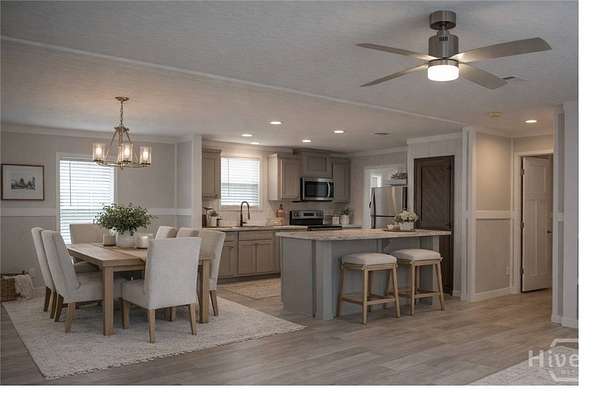 Own your own piece of peaceful countryside with the opportunity for $0 down financing! Making this brand new home not only beautiful, but incredibly attainable. Nestled on 1.75 acres in a scenic stretch of Elbert Co., this property offers the kind of lifestyle people are searching for but rarely find, privacy, open space, and the freedom to truly unwind. Surrounded by pastureland and mature trees, you'll wake up to still mornings, enjoy coffee on your back deck overlooking pastures and a pond and end your days with quiet sunsets that feel miles away from the noise of everyday life. Yet you're still conveniently located just minutes from Elberton and a short drive to Hartwell, Athens and Anderson. With easy access to outdoor destinations like Bobby Brown State Park, Richard B. Russell State Park and Clarks Hill. The home itself is brand new construction and far from your typical mobile home, thoughtfully designed with farmhouse style and modern finishes throughout. The open concept layout creates a natural flow for both everyday living and entertaining, anchored by a spacious kitchen featuring a large island with lots of storage, stainless steel appliances, recessed lighting, and a farmhouse sink perfectly positioned to overlook the brand new back deck. Just off the kitchen is a walk-in pantry with a farmhouse-style door, along with a functional mudroom for everyday convenience. The living room includes custom built-in cabinetry for the TV, and throughout the entire home you'll find soft-toned hardwood-style flooring with no carpet & real sheetrock walls that give the home a more traditional, custom-built feel. All bedrooms are oversized with large closets, while the primary suite offers a true retreat with a spa-like bathroom featuring double vanities, a floor to ceiling tiled super shower and large garden tub. Outside, the land is open, usable and private with endless possibilities whether you envision adding a shop, a garden, or simply enjoying the space as it is.