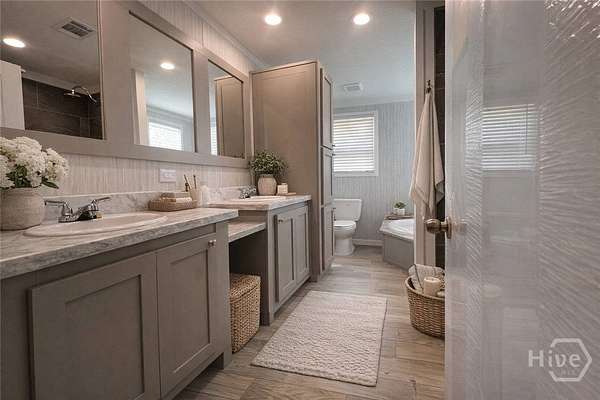 - Breakfast Bar, Built-In Features, Country Kitchen, Double Vanity, Garden Tub/Roman Tub, Kitchen Island, Main Level Primary, Pantry, Recessed Lighting, Separate Shower