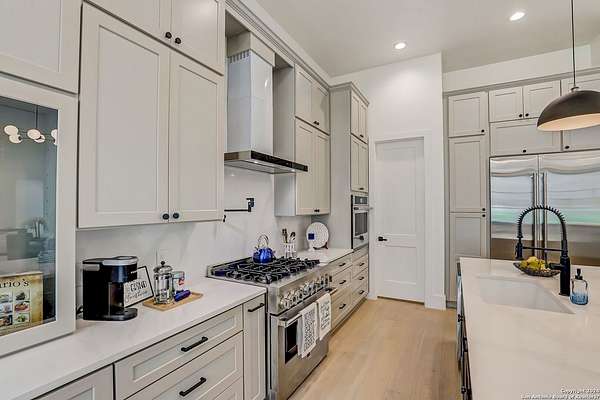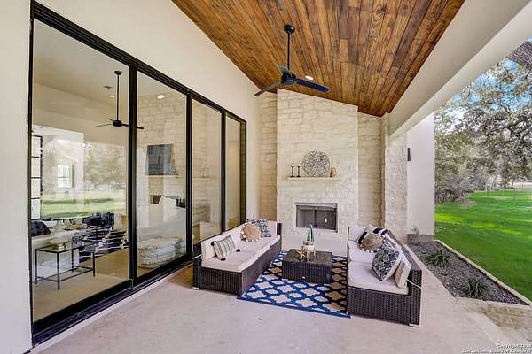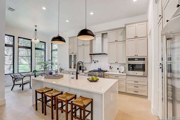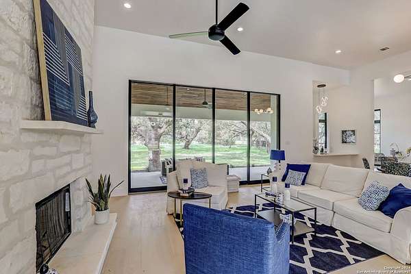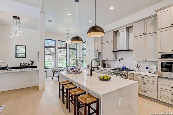 Discover the epitome of luxurious contemporary living within the sought-after Century Oaks Estates neighborhood! Step into this exquisite home and immerse yourself in its spacious open floor plan, showcasing a generously appointed kitchen complete with sleek modern appliances, a convenient breakfast bar, and several dining spaces that beckon for lively gatherings. This custom floorplan boasts four spacious bedrooms, each offering comfort and beautiful views, accompanied by four luxurious bathrooms. A dry bar adds a touch of elegance and functionality to this splendid abode. Indulge in relaxation within the custom stand-alone tub, creating your personal sanctuary to unwind after a bustling day. Envision yourself basking in the serene ambiance of a tranquil evening by the fireplace on the rear patio, embraced by the beauty of mature live oaks. Let us guide you in turning this exceptional residence into your own cherished haven. Make this your beloved home sweet home today!