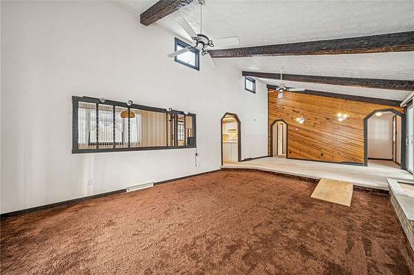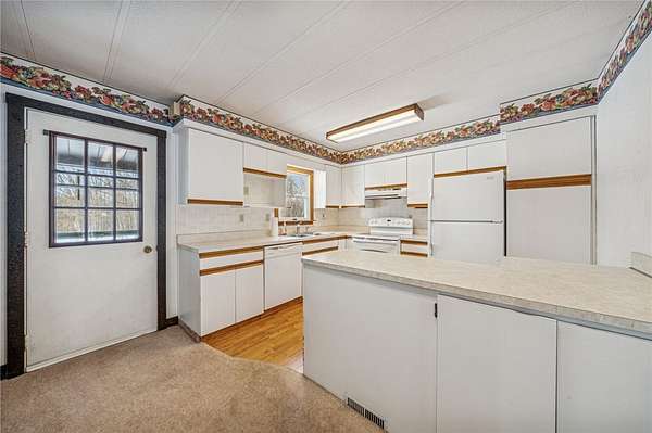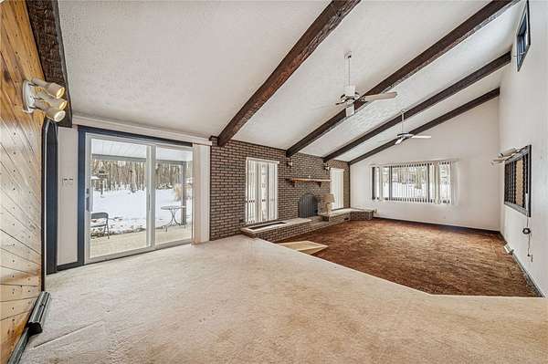2 homes nestled on 2 private acres, this property offers space, versatility, and endless opportunity. The main home welcomes you with a bright white kitchen featuring all appliances included, a large separate dining room, and a huge living room with soaring ceilings, a stunning brick accent wall, and a cozy fireplace. Abundant windows fill the home with natural light, creating a warm and inviting atmosphere throughout.