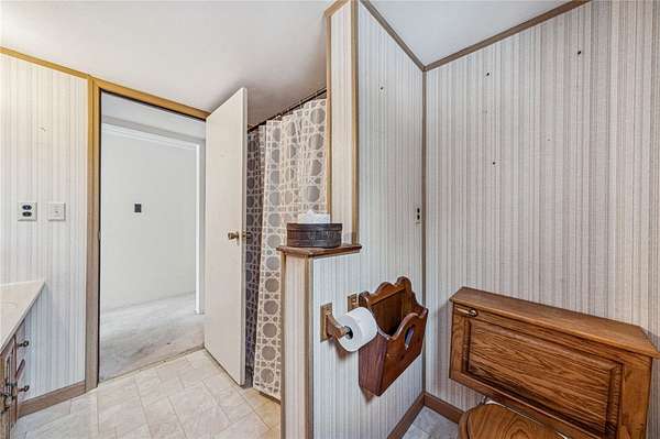 Enjoy peaceful mornings and relaxing evenings on the spacious front and back porches overlooking your land. The primary bedroom is generously sized and features its own full bathroom, walk-in closet, and sliding glass door leading directly to the back porch. A second bedroom and additional full bathroom provide comfortable accommodations, while the third bedroom has been converted into a laundry room but could easily be turned back into a bedroom if desired.