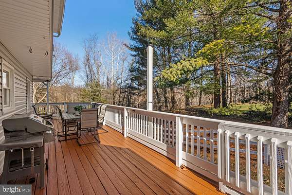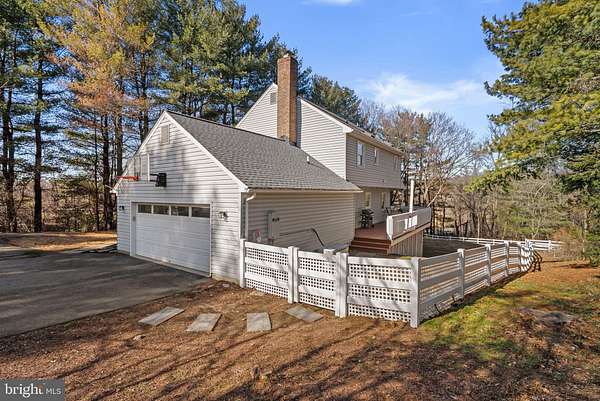 Beautifully maintained single-family residence offering 3 bedrooms, 2.5 bathrooms, and 1,914 finished square feet, privately tucked away on a serene, tree-surrounded 2.35-acre lot in sought-after Goshen Hunt Hills. A long private driveway leads to an expansive parking area and a two-car attached garage, while charming stepping stones guide you to the welcoming wraparound front porch and main entrance. Inside, a gracious foyer showcases classic wainscoting detail and sets the tone for the home's timeless appeal. Newly refinished hardwood floors flow throughout the traditional main level, encompassing a sun-filled living room, an elegant formal dining room with lower wainscoting, and a comfortable family room anchored by a striking stone wood-burning fireplace. The family room also offers convenient access to the garage and exterior, along with a nearby powder room. The beautifully remodeled eat-in kitchen is both stylish and functional, featuring white cabinetry, abundant counter space, recessed lighting, stainless steel appliances, including a recently replaced refrigerator, and a seamless connection to the family room, ideal for everyday living and entertaining. The upper level hosts three bedrooms finished with luxury vinyl tile flooring, including a spacious primary suite with a walk-in closet and a tastefully renovated en-suite bathroom with a dual-sink vanity. A second full bathroom completes this level. The walk-out lower level presents a versatile blank canvas ready for customization and includes laundry facilities and exterior access. Outdoor living truly shines with a charming wraparound porch that connects to an elevated rear deck overlooking a spacious, fully fenced, tree-lined backyard-perfect for relaxing, entertaining, or enjoying the peaceful natural setting. Additional highlights include a whole-house generator. Ideally located just minutes from local parks, hiking trails, shopping, dining, and major commuter routes, including I-270, Goshen Hunt Hills offers both tranquility and convenience.