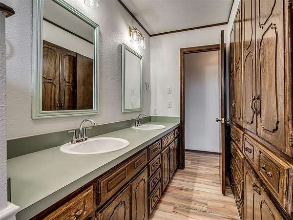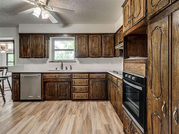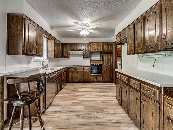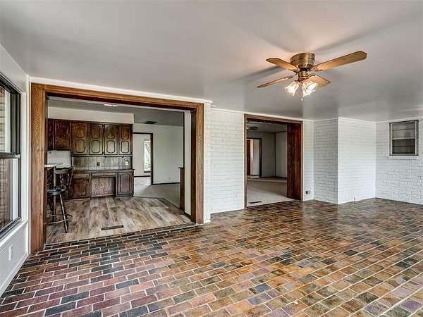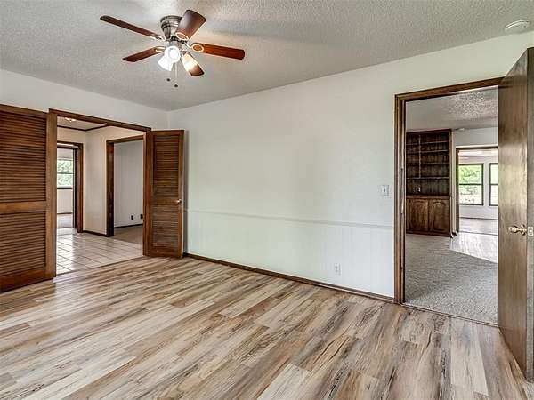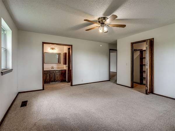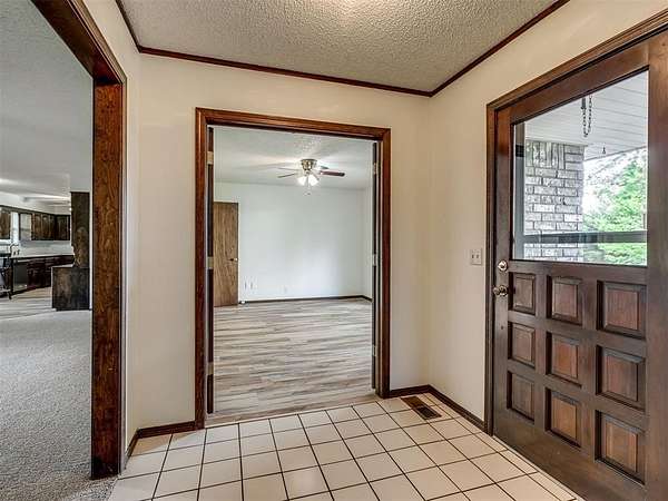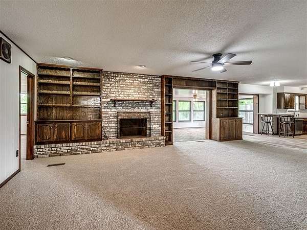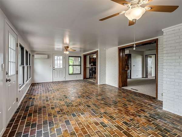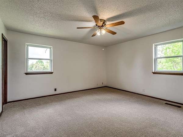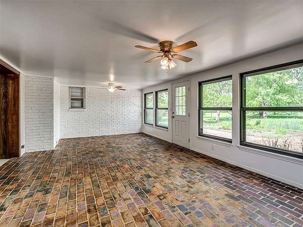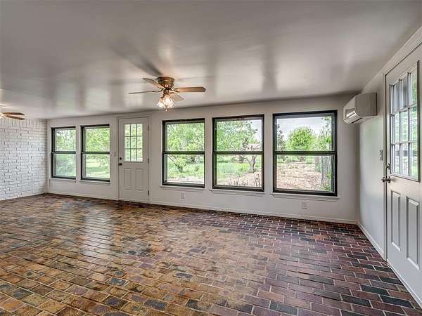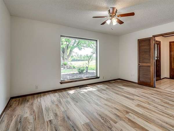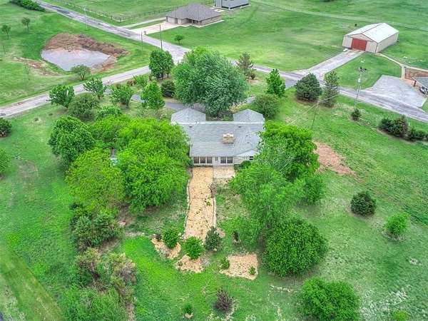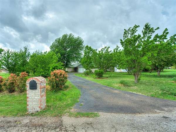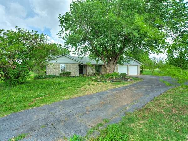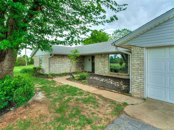 Welcome to your private slice of country paradise on 2 beautiful acres, perfectly positioned on a corner lot in the highly sought-after Deer Creek School District. This move-in ready home blends peaceful living with stylish updates and thoughtful features throughout. Inside, you'll find a spacious living area with a cozy fireplace and built-in bookshelves, creating the perfect space to relax or entertain. The large kitchen shines with new countertops, refinished cabinets, a new oven, smooth-top stove, breakfast bar, and built-in desk. A bright sunroom with its own mini-split offers a perfect year-round retreat (not included in square footage). The primary suite features a beautifully updated en suite bath with a new walk-in shower and three closets. All bedrooms have new carpet, and the home also includes new flooring, fresh paint, and new double-pane windows. A large utility room provides abundant storage, pantry space, wash sink, and includes the washer and dryer. Outside, enjoy two back patios, a circle drive, and a separate fenced area ideal for pets or animals. The land is truly special-adorned with Peach, Pear, Redbud, Crab Apple, Magnolia, Mimosa and more, offering beauty, shade, and seasonal color. A 500 sq ft insulated shop with concrete floor and overhead door adds versatility for hobbies or storage. Additional upgrades include a Class 4 impact-resistant roof (potential insurance savings) and an in-ground storm shelter. With a comfortable flow, scenic setting, and extensive updates, this property offers the best of country living-ready for you to call home.