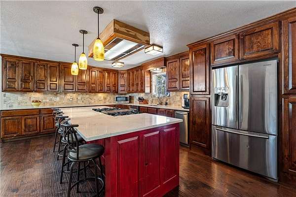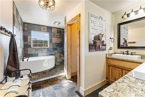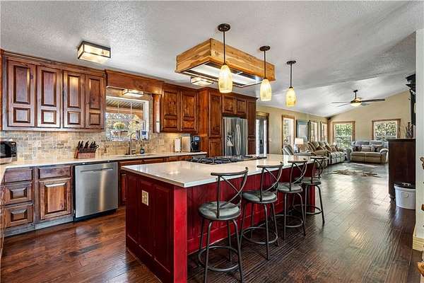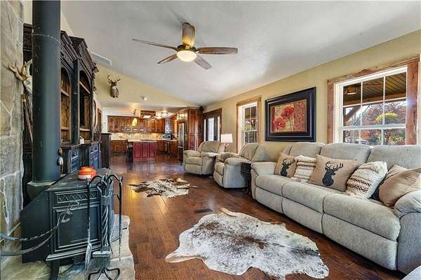 This 6-bed 4-bath home features an in-ground pool & a 1,500 sqft outdoor kitchen, complete with a full bathroom, seating bar, hot tub, & all the space you need for gatherings of any size. Adventure awaits with a 400 sqft treehouse, axe-throwing range & open areas perfect for any hobby. For added peace of mind, the property backs to the Mark Twain National Forest, offering privacy & stunning natural surroundings. Inside you will find spacious living areas, a fully finished walkout basement & upper-level second living room/game room, providing room for everyone to relax and enjoy. The home also features a tankless water heater, solar panels, & two high-efficiency dual-fuel HVAC systems, ensuring year-round comfort & energy savings. Car enthusiasts & hobbyists will appreciate the 4-car garage with abundant storage. Just a short drive to Beaver Lake & close to Rogers, Bentonville, & Pea Ridge. With its exceptional amenities, thoughtful upgrades, this home delivers the ultimate in luxury country living.