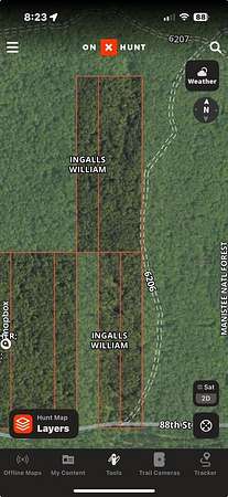 Est $1,005/mo25 Acres of Mature Hardwoods with a couple of rustic cabins touching about 12,000 acres of federal Land on all 4 sides. This land is high and dry with no swampy areas. There is no electric at any of the 4 parcels that make up the total acreage making it a perfect spot for an off grid home. The closest electric is about 7/10 of a mile away. Two box deer blinds already in place ready to go for Fall. The trees are mostly a mix of Large Maple and Oak. Close to the Little South branch of the Pere Marquette River for trout fishing,