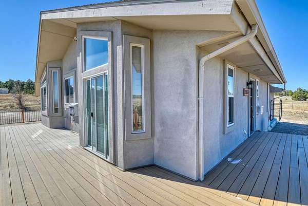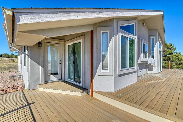 Wake up each morning to breathtaking views of Pikes Peak, rolling hills, and towering Ponderosa Pines on your own peaceful 5-acre Colorado retreat-all just minutes from shopping, dining, and everyday conveniences in Peyton and Colorado Springs. This beautiful ranch-style home offers the comfort of main-level living with a warm and inviting great room featuring vaulted ceilings and a stunning stone fireplace, perfectly positioned to take in the incredible mountain views. The remodeled kitchen offers abundant granite counter space and quality appliances, making it the perfect place to prepare meals while gathering with friends and family. Just outside, the expansive wrap-around deck invites you to entertain, relax under the Colorado sky, or enjoy the quiet beauty of the surrounding landscape. The main level includes two spacious bedrooms including a private primary suite, while the finished lower level features two additional oversized bedrooms and a massive family room-ideal for movie nights, gaming, or the ultimate teen retreat. The fully fenced 5-acre property provides space, privacy, and room to roam, while the oversized garage offers plenty of storage for vehicles, tools, and outdoor gear. If you've been dreaming of wide-open spaces, stunning mountain views, and peaceful country living without sacrificing convenience, this exceptional property offers the best of Colorado living. Attention: Buyers with a house to sell, we can solve the home sale issue easily - call for details.
