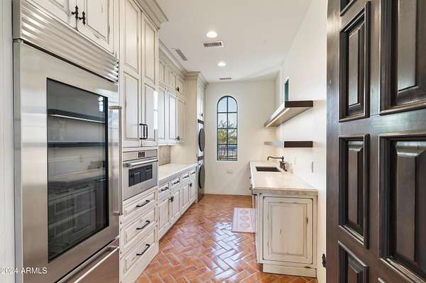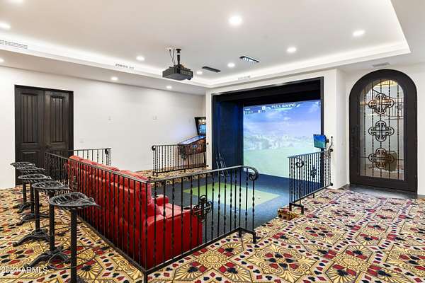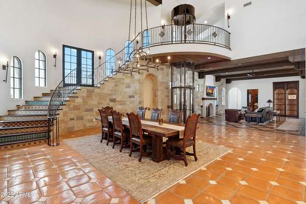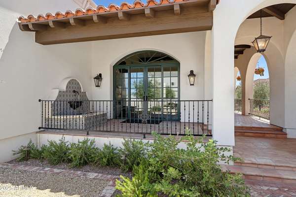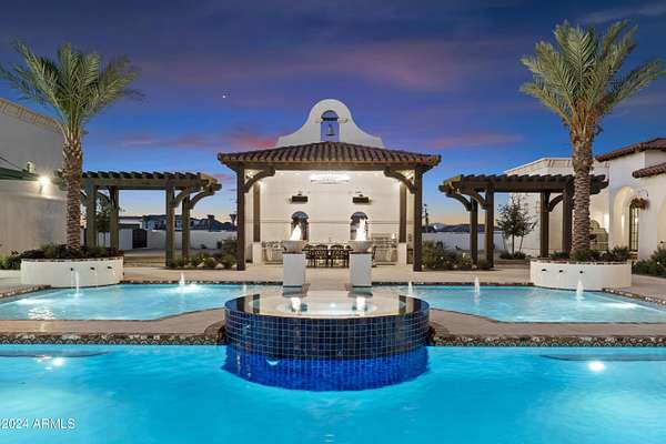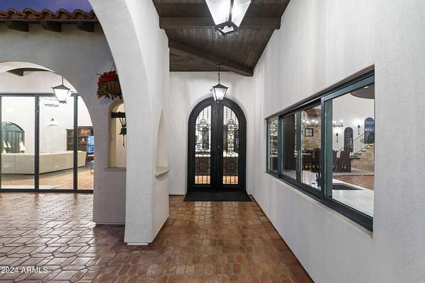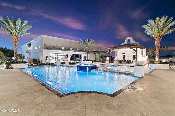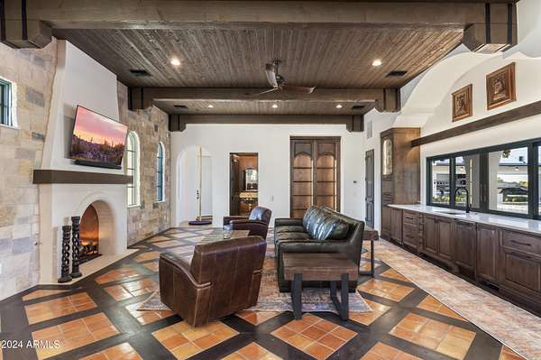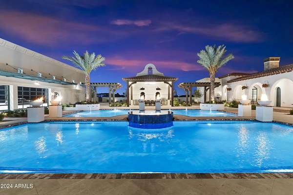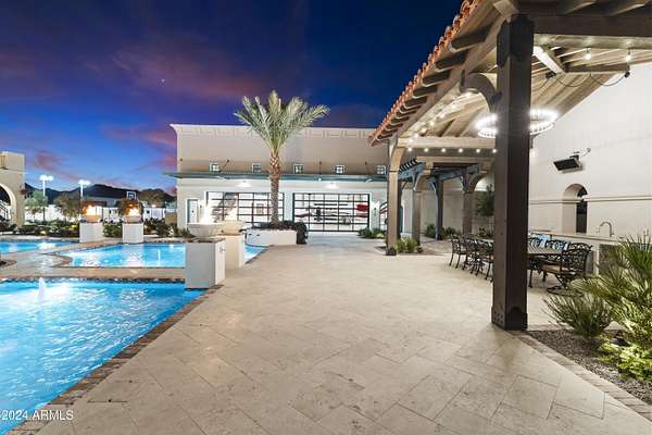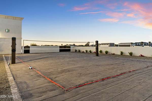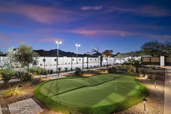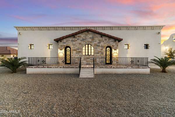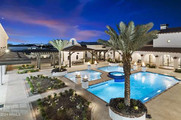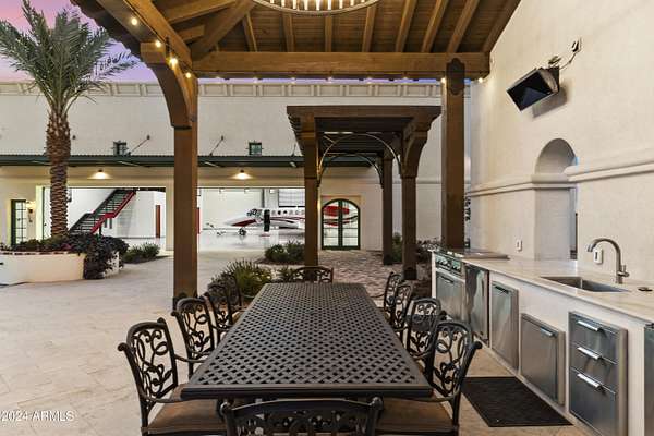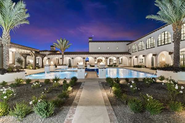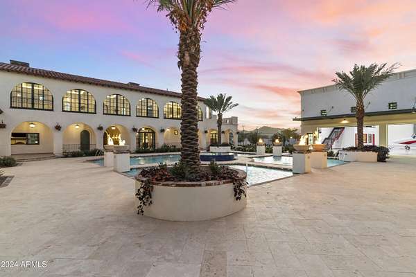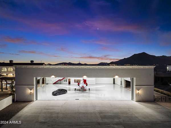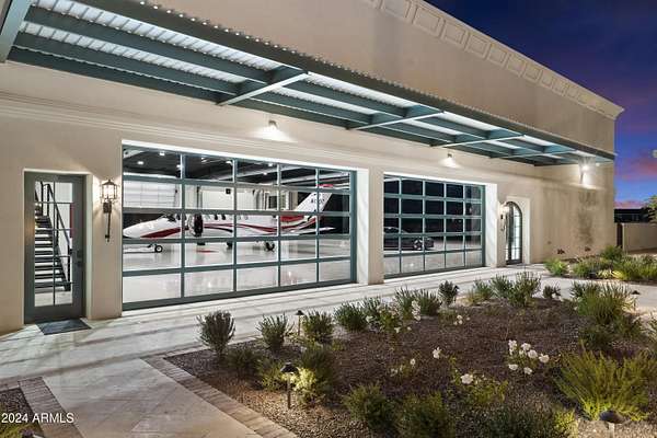 Introducing Mision Veintidos (Mission Twenty-two). This amazing Pegasus Airpark (5AZ3), Queen Creek, AZ home was inspired by classic Spanish style mission architecture. The unique mission style entrance to the home is through a breezeway gate which leads you to a stunning courtyard view of the estate. This estate of 32,000 sq ft of luxury living, with an incredible 26,000+ sq ft of conditioned space has 16'' thick walls for style and maximum efficiency. Perfectly situated on North South double lot, taking a massive 350' of taxiway, sits the main residence on three levels and includes all these features: A 10,000 sq ft steel construction Hangar with Full HVAC, Epoxy coated floor, ''Big Ass'' Fan, Pocket style main hangar doors with an 78'x17' clear opening. Flight office, Storage room, Downstairs bathroom, Interior stairs to mezzanine with bar, Upstairs bathroom, Balcony, Two motorized vertical opening 20 ft glass garage style doors facing the courtyard. " A massive courtyard featuring: 2,000 feet of covered breezeways, Multiple swimming pools with fountains and firepots, Covered outdoor full kitchen under a mission style bell tower, Lit Pickle ball/basketball sports court & Putting green, Sand Volleyball court. "The main house has a 5,000 sq ft Basement: bowling alley, 75 ft shooting range, Tiger Woods' (Full Swing Pro 2.0) Golf Simulator, Wine Cellar, Walk-in vault, Storage room, Bathroom, Interior and exterior stairs. " Next is a 2000+ sq ft detached Master Bedroom: Custom his and her walk-in closets, Separate bathrooms and linens, Large walk-in shower & separate tub, Incredible ceiling details with accent lighting, Multiple balconies, Bar, Fireplace, sliding doors. " Master Spanish Garden: with water and fire features. " General Design considerations: 16" double insulated walls which are quieter, more energy efficient and style correct as seen in the deep-set windows and doors, The extensive iron work is amazing, Custom railing with HH monogram, windows with iron details. " Don't miss these details: clear view elevator from basement to second story sized for wheelchair access. " Wired Cameras access from internet. " Automated lighting. " Security System " Hidden AV closet " Luxury full-service guest suites with spa like bathrooms, suites include laundry and bar in each " 2834 sq ft 2nd Story with Gym, spa and sauna, gym bathrooms & laundry. " Large outdoor balcony, firepit, incredible views of the Superstition and San Tan mountains " Balcony sliding windows overlooking the courtyard. " Firepole slide down from gym to first floor hidden door " Formal living room " 30' sliding glass doors with view of hangar " 28' ceiling with massive beams " Oversize castle style fireplace " Gourmet kitchen with Baking center " Sub Zero Wolf appliances, Easy access from vehicle to kitchen, Fully equipped Butler's Pantry. Dark and smokey (informal sitting room) " Floor level gas fireplace " Full bar " Bathroom " Large sliding window overlooking courtyard pool. Too many features to list.