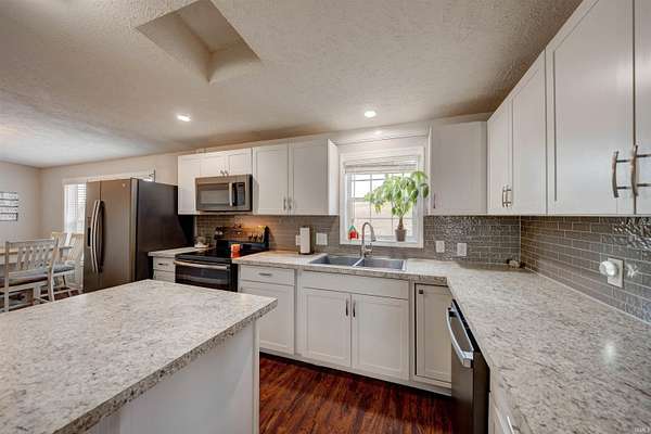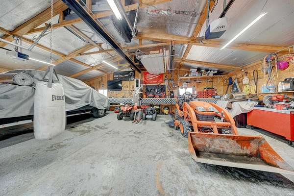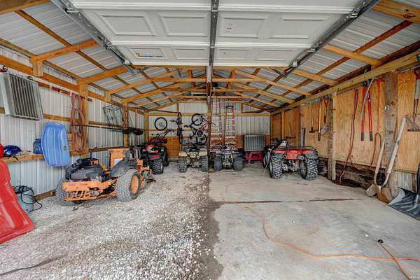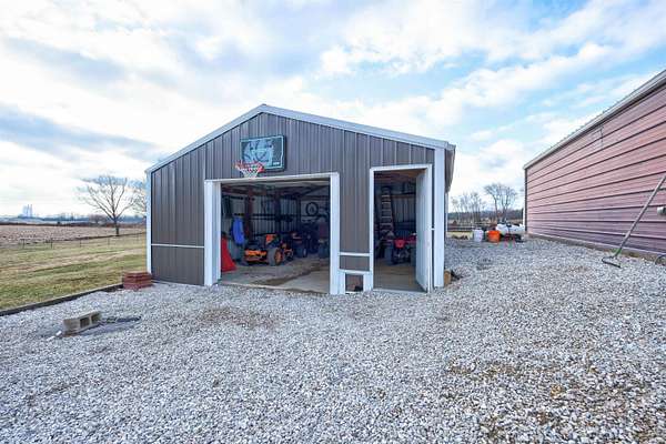 Welcome to 21874 N County Rd 500 E in Dale, set on 2.63 acres surrounded by scenic country views. This 1,620 sq ft, 4-bedroom, 2-bath home has been well maintained and thoughtfully upgraded, offering a functional layout paired with exceptional exterior amenities that make the property truly stand out. The living room features a gas fireplace, adding warmth and character to the main gathering space. The kitchen is both practical and inviting, complete with a center island for prep and seating as well as a dedicated pantry for added storage and organization. The home is equipped with a durable metal roof, providing long-term reliability and low-maintenance appeal. In addition to the attached 1.5-car garage, the property includes two detached insulated workshops, offering impressive flexibility for storage, hobby use, equipment, or recreational vehicles. One of the workshops is heated and cooled, allowing for comfortable, year-round use--an uncommon and highly desirable feature. Outdoor living is equally appealing, with a saltwater above-ground pool that creates the perfect setting for relaxation and seasonal enjoyment, all framed by open country surroundings. With acreage, well-cared-for interior space, versatile outbuildings, and quality upgrades throughout, this property offers a rare combination of space, utility, and rural setting.