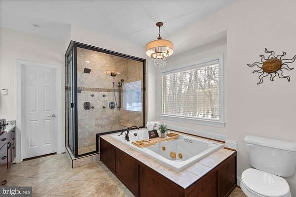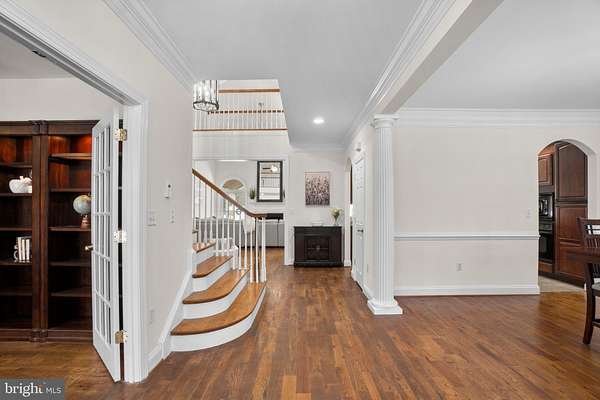 Set beyond a charming frog pond and a sweeping wraparound porch, this one-of-a-kind property sits on 1.69 acres of scenic beauty, where mornings start with views of nature and evenings unwind in privacy-- all just minutes from major commuter routes. Its the rare kind of home that feels like a peaceful escape without sacrificing everyday convenience. Step inside to a breathtaking grand foyer with a statement staircase that opens into a bright, airy two-story family room, creating a dramatic yet inviting space perfect for everyday living and entertaining. Fresh paint and gorgeous hardwoods are highlighted throughout the home, and every detail was thoughtfully considered. The main level features a dedicated office/library with built-in bookcases and French Doors for privacy. A formal dining room and a spacious gourmet, eat-in kitchen with a wet bar, island, and dining area are perfect for entertaining! The kitchen flows seamlessly into the stunning family room with vaulted ceilings and wood-burning fireplace. Off the kitchen, a powder room and laundry room/mudroom with sink and plenty of cabinetry round out the right wing of the home. A second powder room exists on the left wing of the home. Escape to the expansive main level primary suite-- a true retreat, offering a spa-inspired ensuite with a dual shower head steam shower, jetted soaking tub, dual vanities, and a large walk-in closet with organization system. Upstairs, youll find three spacious bedrooms, each with charming dormers, private ensuite bathrooms, and generous closet space, plus an expansive bonus room with a skylight and Palladian window-- a space ideal for recreation, gym, or a guest retreat. The open overlook to the family room adds architectural interest and connectivity throughout the home. The enormous basement with walk-up outside access is designed for entertaining and unforgettable evenings, featuring a wet bar with large island, a full bathroom, abundant storage, and the best part-- a one-of-a-kind hidden speakeasy concealed behind a bookcase. An unforgettable focal point! Step outside to a fully fenced backyard oasis, complete with a sprawling patio (partially covered), TV hookup, ceiling fans, and space to gather, relax, and entertain in total privacy. A shed tucked in the corner adds functionality while allowing the yard to remain open. This home is packed with premium upgrades and efficiencies, including: a new roof (2020), leaf filter gutter system (2024), whole-house generator, central vacuum system, SpacePak high-velocity A/C, water softener, and radiant heated floors with individual thermostats to customize temperature. With a 3-car oversized garage, 4 bedrooms, 5 full baths, 2 half baths, and thoughtful details at every turn, this property is a rare combination of luxury, privacy, and convenience-- where peaceful living meets everyday accessibility. Welcome home! *Please note: Square footage is approximate and should not be used for property valuation. *