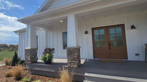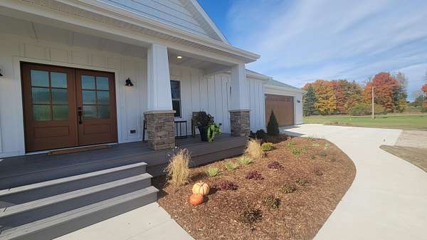 This stunning, move-in ready, 4-bedroom, 3-bathroom modern farmhouse offers 2,430 square feet of thoughtfully designed living space, including a 750 sq. ft. finished walkout basement and an oversized 2-car garage. Nestled on over 2 usable acres in the friendly, picturesque town of Fennville, you'll enjoy the charm of nearby orchards, wineries, and small-town warmth, all within easy reach of the lakeshore. Step inside to an inviting, open-concept floor plan that serves as the centerpiece of this state-of-the-art, system-built home. Every detail has been curated for modern comfort and timeless appeal. Highlights and Upgrades Include: - Irrigation system - Engineered Wood (LP Smart) Siding - Finished walkout basement - Composite decking & landscaped yard - Central humidifier - 200 sq. ft. elevated rear deck - Space for a future pole barn - Chef-grade Forno appliance suite - Pre-wired for AV - One-year builder warranty - Turnkey Ritz-Craft construction The chef's kitchen showcases Calacatta Mont Hanstone quartz countertops, Designer White cabinetry, and natural wood accents, creating a perfect blend of warmth and sophistication. The primary suite offers a peaceful retreat with a spacious walk-in closet and a luxury ensuite featuring dual vanities, quartz countertops, and a walk-in shower. A perfect balance of modern design, smart technology, and country tranquility. For more information or to schedule your private tour, contact us today. Visit the Immersive Homes Design Center in Williamston, MI, to explore our technology-driven approach to homebuilding, including pre-visualization, customization, and land planning tools. Renderings are for illustrative purposes only. Optional features, finishes, and design elements may vary.