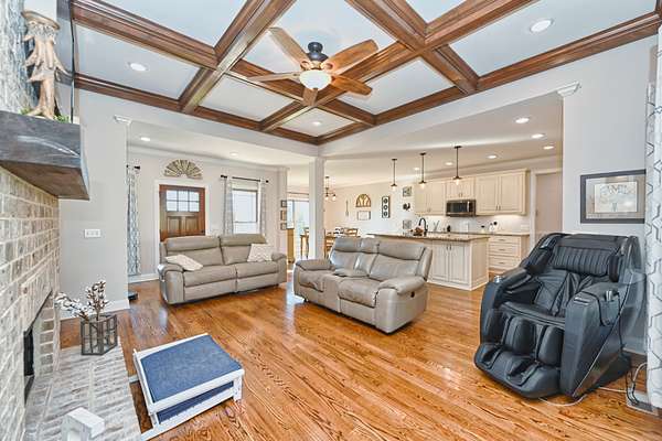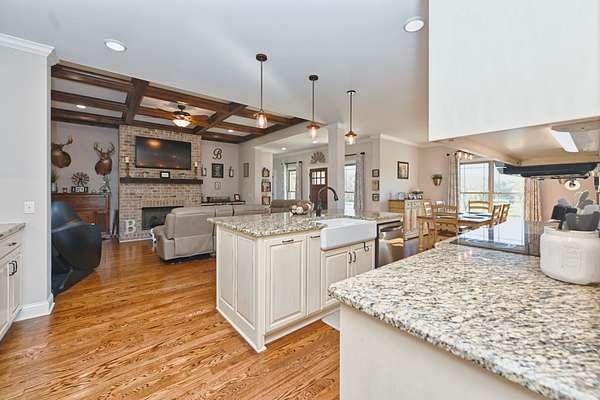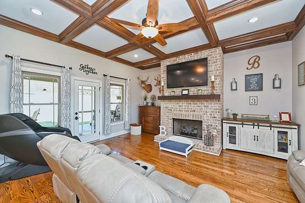This beautiful place is can be where you call home. Located in a great location convenient to all the amenities and easy interstate access. The home sets on 2 acres and includes a free-flowing family area making up the kitchen, dining room and living room. Attention is quickly drawn to the coffered trey ceiling in the living room and the brick fireplace with gas logs. The master suite with his and her walk-in closets, a large tiled shower, as well as two separate vanities provides a lot of convenience. Walk in closets are also included in the second and third bedrooms. Above the two-car attached garage is an unfinished 453 square foot bonus room that gives the opportunity for the buyer to design some added space however they choose. A 30 x 50 detached shop with 12-foot lean to, 14 foot garage door with 3 additional walk out doors, within the detached garage is a 20x20 living room, 10x10 bathroom with a shower, vanity and toilet, 10x10 storage area, the shop has a stove outlet and a utility sink, this awesome space provides plenty of room to entertain family and friends. Located above the shop is 600 square feet of floored storage. Come see what all this special property offers.