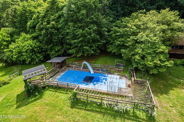 Discover the perfect blend of privacy, space, and potential in this 3-bedroom, 2-bath home situated on over 15 acres. This spacious fixer-upper features generously sized rooms and an open-concept main living area, offering a great foundation for your dream renovation. Enjoy peaceful mountain views from the front porch or relax on the side porch where you will find a deck walkway to a playhouse that can be finished to have a fun outdoor retreat. The property includes a 1-car carport, and a detached 2-car workshop with an upstairs room ready to be finished, and ample storage or hobby space. Ideal for gardening enthusiasts, the land is already producing an impressive variety of fruits and vegetables-including asparagus, apple, pear, pecan, hazelnut, and cherry trees, along with blueberries, raspberries, blackberries, and muscadines. A small greenhouse and large garden tunnel are also in place to extend your growing season. To top it off, an in-ground pool offers a refreshing retreat during the warmer months. With incredible outdoor features and room to grow inside and out, this property is ready for your vision. Bring your creativity and make this your own beautiful homestead! Sold as is no repairs.