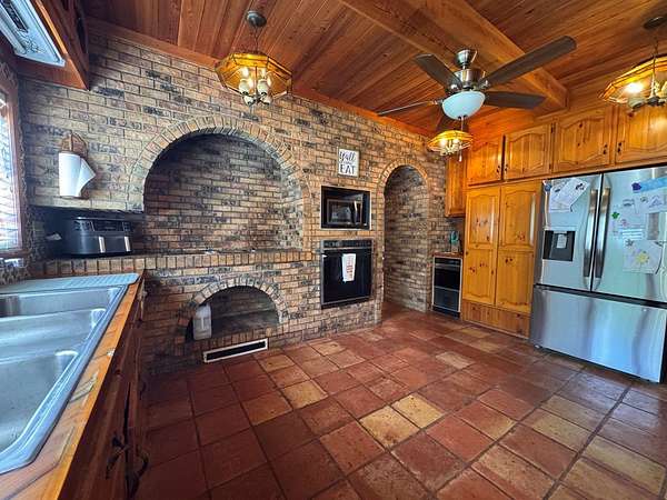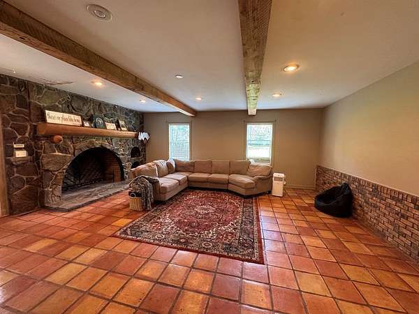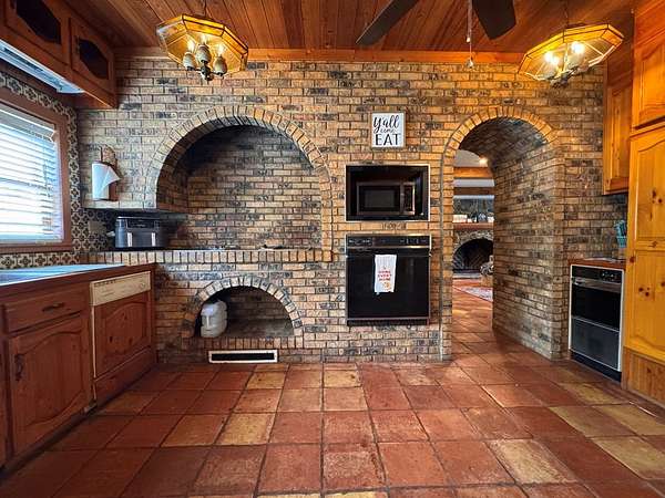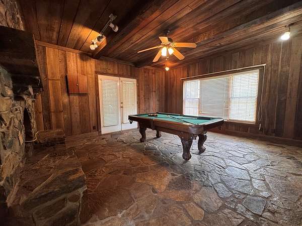 12.66 acres and over 4600 sq feet!! This 5 bedrooms and 4 full bath property has the space for all your dreams to come true! Enter into the open double foyer into large gathering spaces like the dining room or living room. The game room is full of character boasting stone floors, one of the many fireplaces and beautiful woodwork creating a fun atmosphere for the pool table. The heart of the home, the kitchen, is truly a unique space full of character and thoughtful design. Arched cozy fireplaces and arched doorways throughout the home bring unique charm as well as the warm tongue in groove ceiling features found throughout. The heart of the home, the kitchen, is truly a unique space full of character and thoughtful design. The giant family room features the largest fireplace you've ever seen! With plenty of storage and abundant options for playing together or retreating for rest, this property has it all! The outdoors continues the theme of large and spacious with the 2 red iron workshops featuring 5 roll up doors! This property is ready for you to make it your own and make your dreams come true! Call today for your private tour!