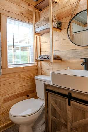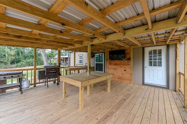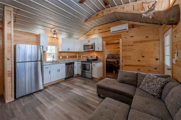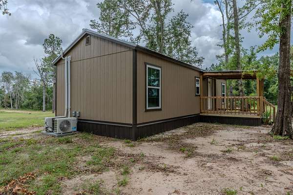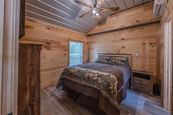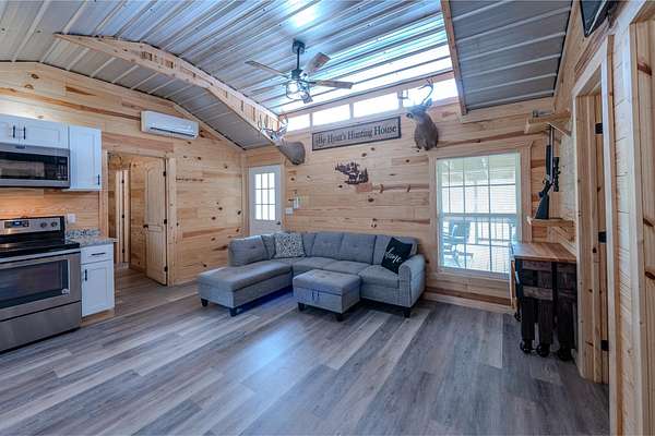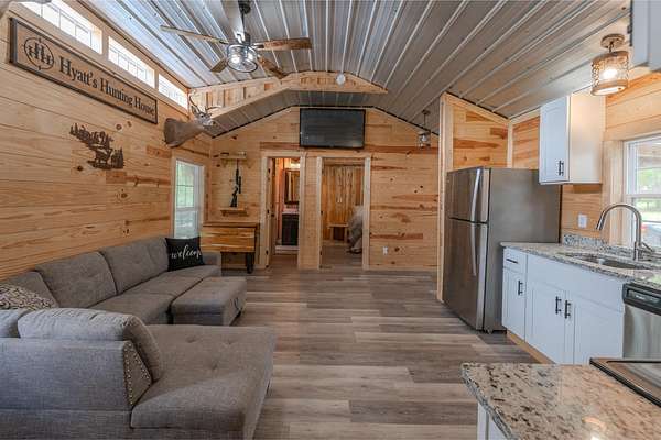 Located in the quiet countryside of Alamo, Georgia, Triple H Farm is a turnkey 120 acre property thoughtfully set up for comfort, recreation, and the enjoyment and pursuit of wildlife. The farm features a recently completed 16x40 (640 sq ft) custom-built home, finished approximately six months ago. Built with care and craftsmanship by the owner, every board was hand-selected and milled on-site. The home includes soft-close cabinets and drawers, two bedrooms and bathrooms, washer and dryer, all in a smart layout that maximizes space. The interior is trimmed with pine walls, two of which are insulated, and portions of the ceiling are spray-foam insulated for energy efficiency. Despite being a portable building, its anchored securely with matching skirting and is fully up to code with a 150 amp electrical service. Utilities are underground, and fiber optic internet was added in April 2025. The power service is through Little Ocmulgee EMC, which allows users to monitor usage through a mobile app. The home is extremely efficient, with three AC units keeping it cool while maintaining a very reasonable power bill.